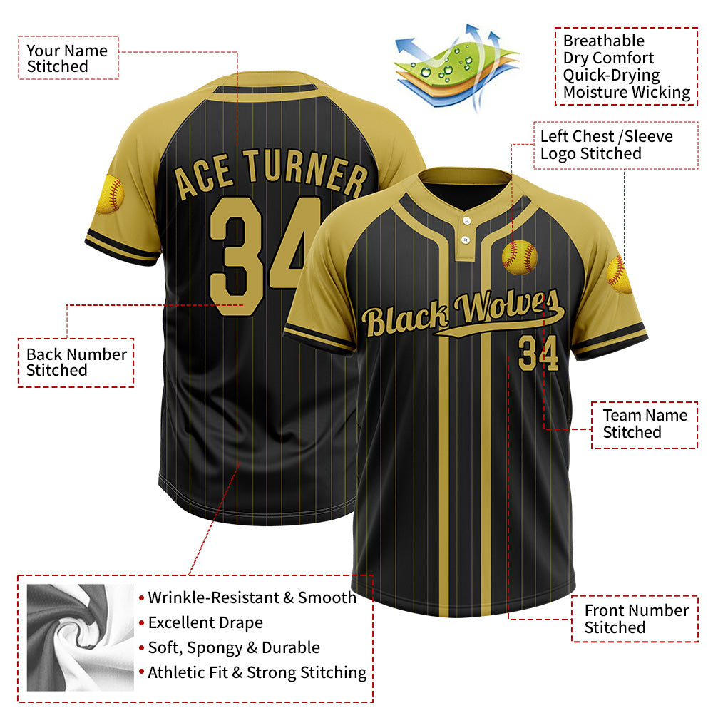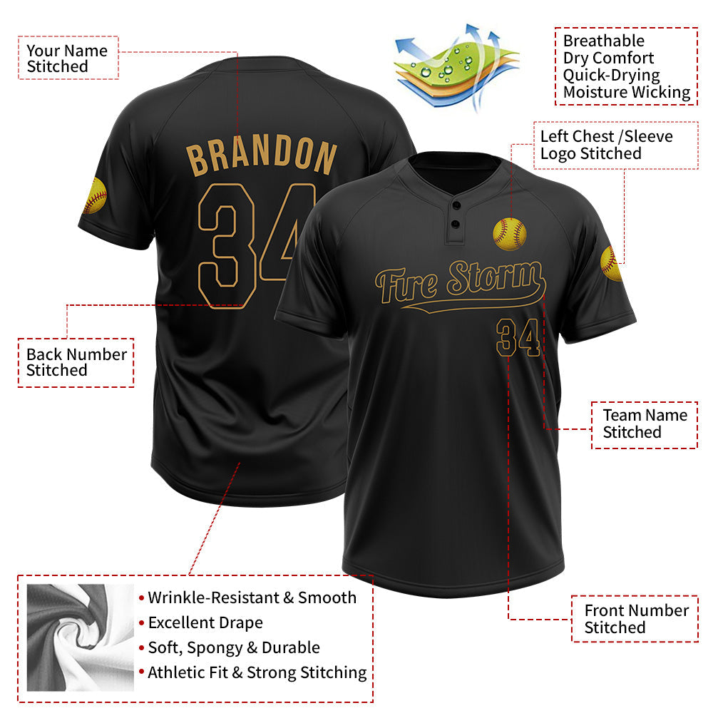 CUSTOM BLACK OLD GOLD TWO-BUTTON UNISEX SOFTBALL JERSEY