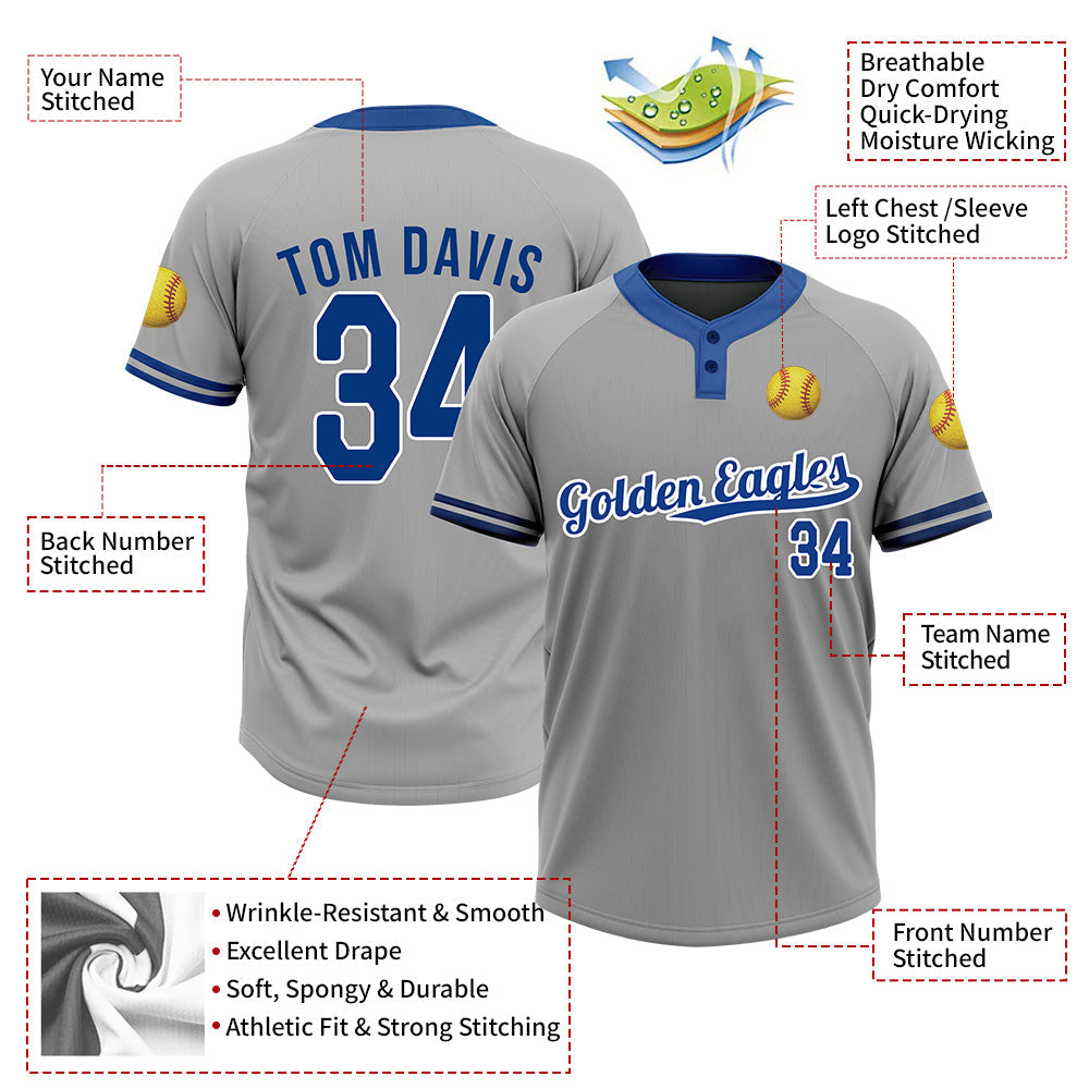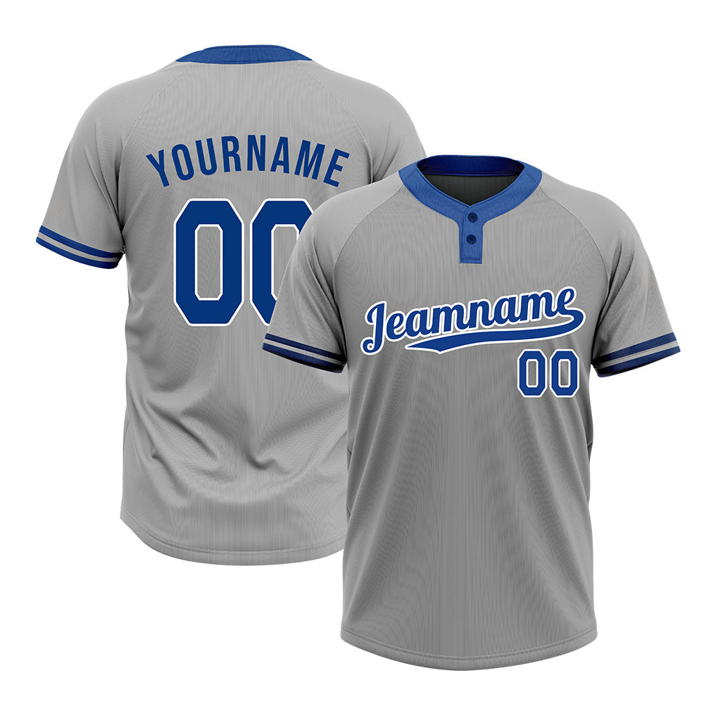 CUSTOM GRAY BLUE-WHITE TWO-BUTTON UNISEX SOFTBALL JERSEY