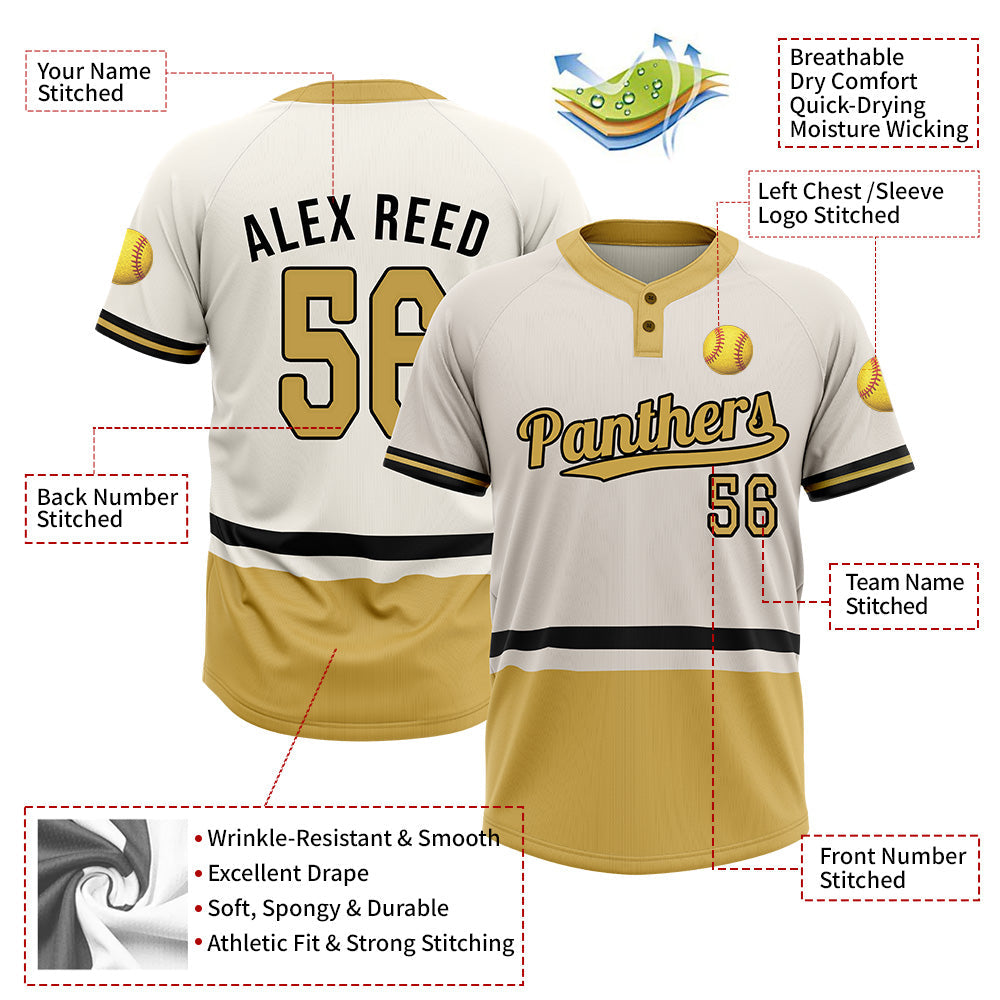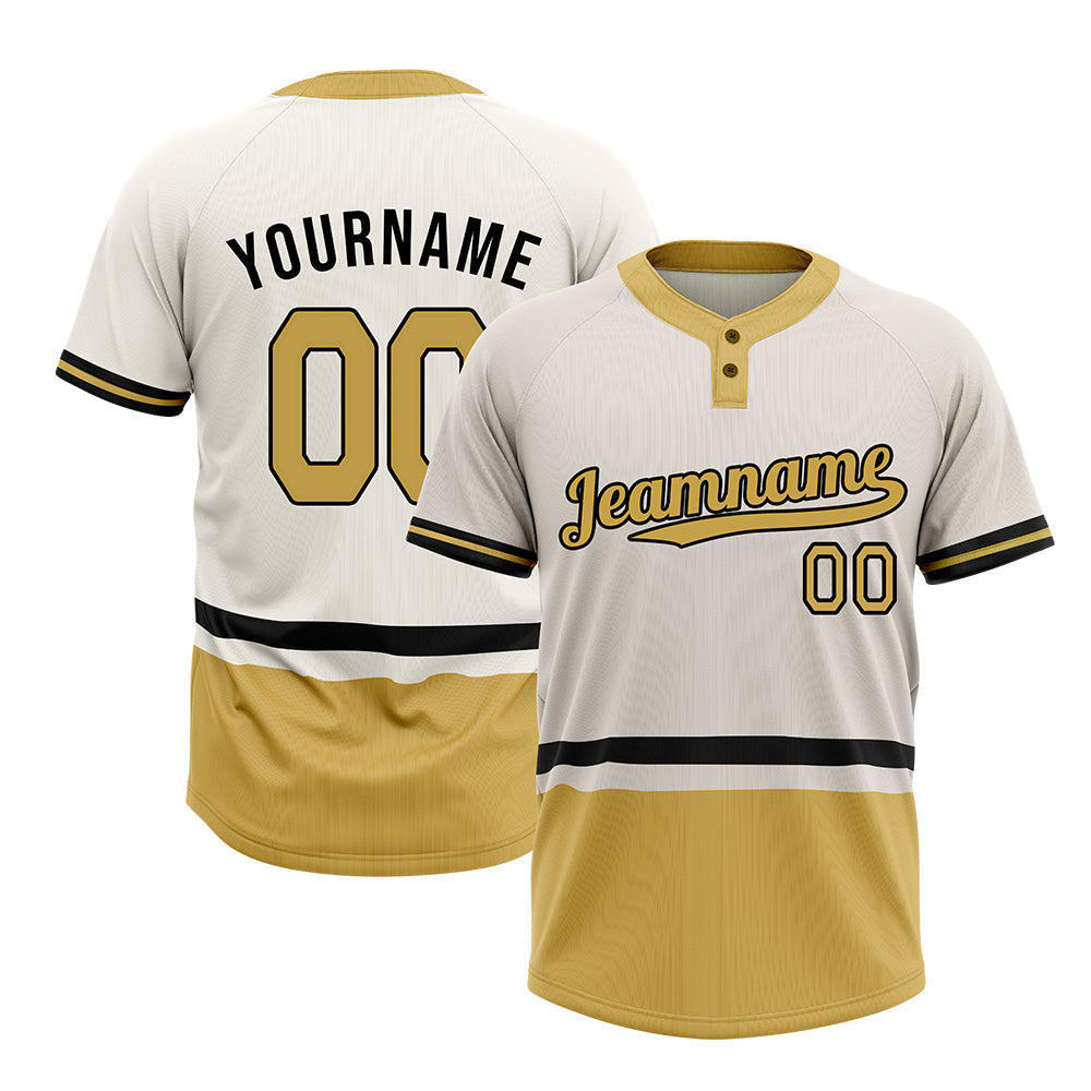 CUSTOM CREAM OLD GOLD-BLACK TWO-BUTTON UNISEX SOFTBALL JERSEY