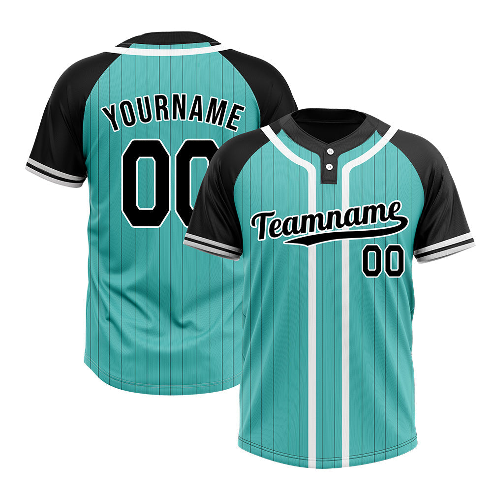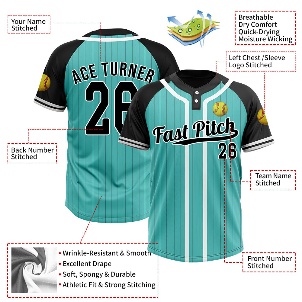 CUSTOM TEAL BLACK PINSTRIPE BLACK-WHITE TWO-BUTTON UNISEX SOFTBALL JERSEY