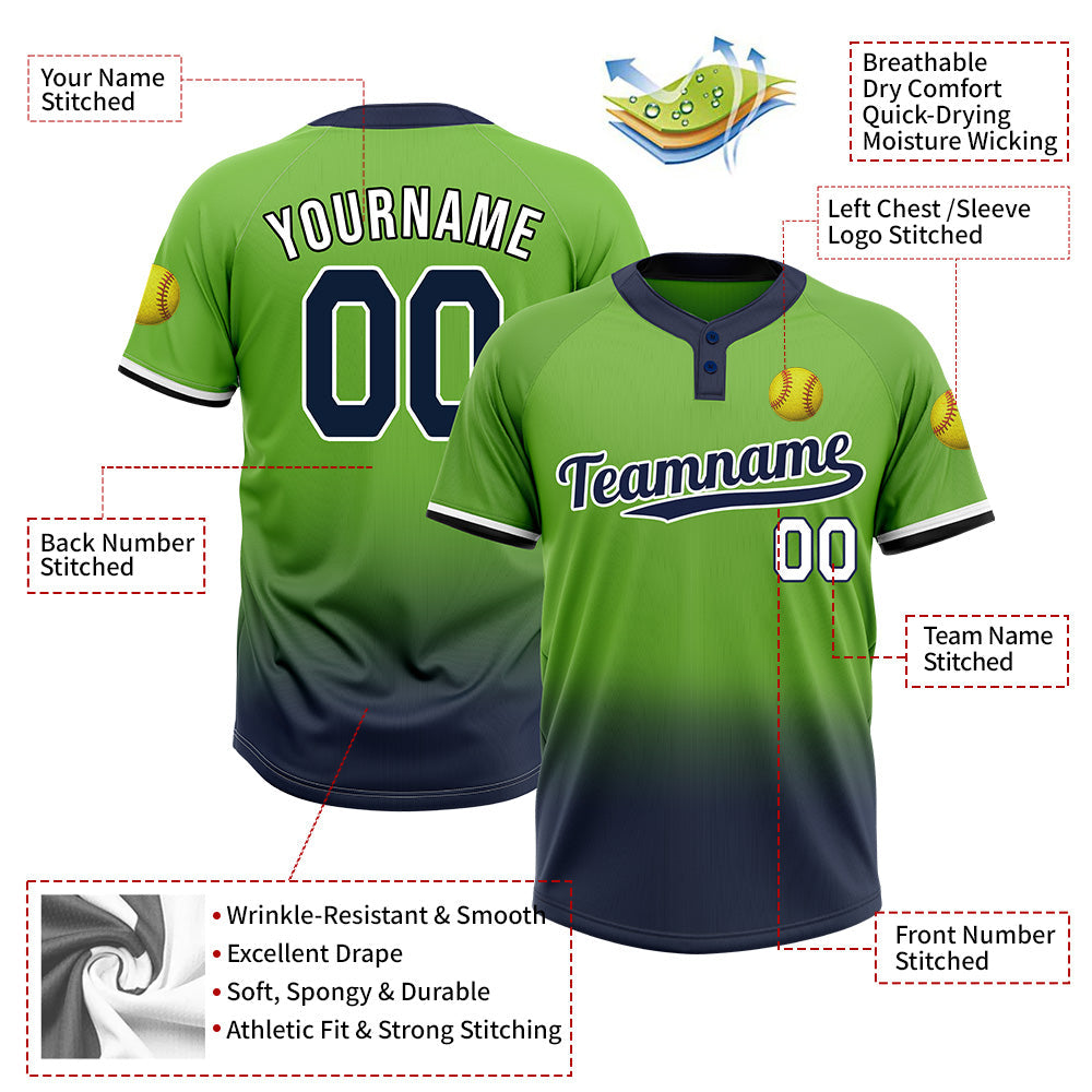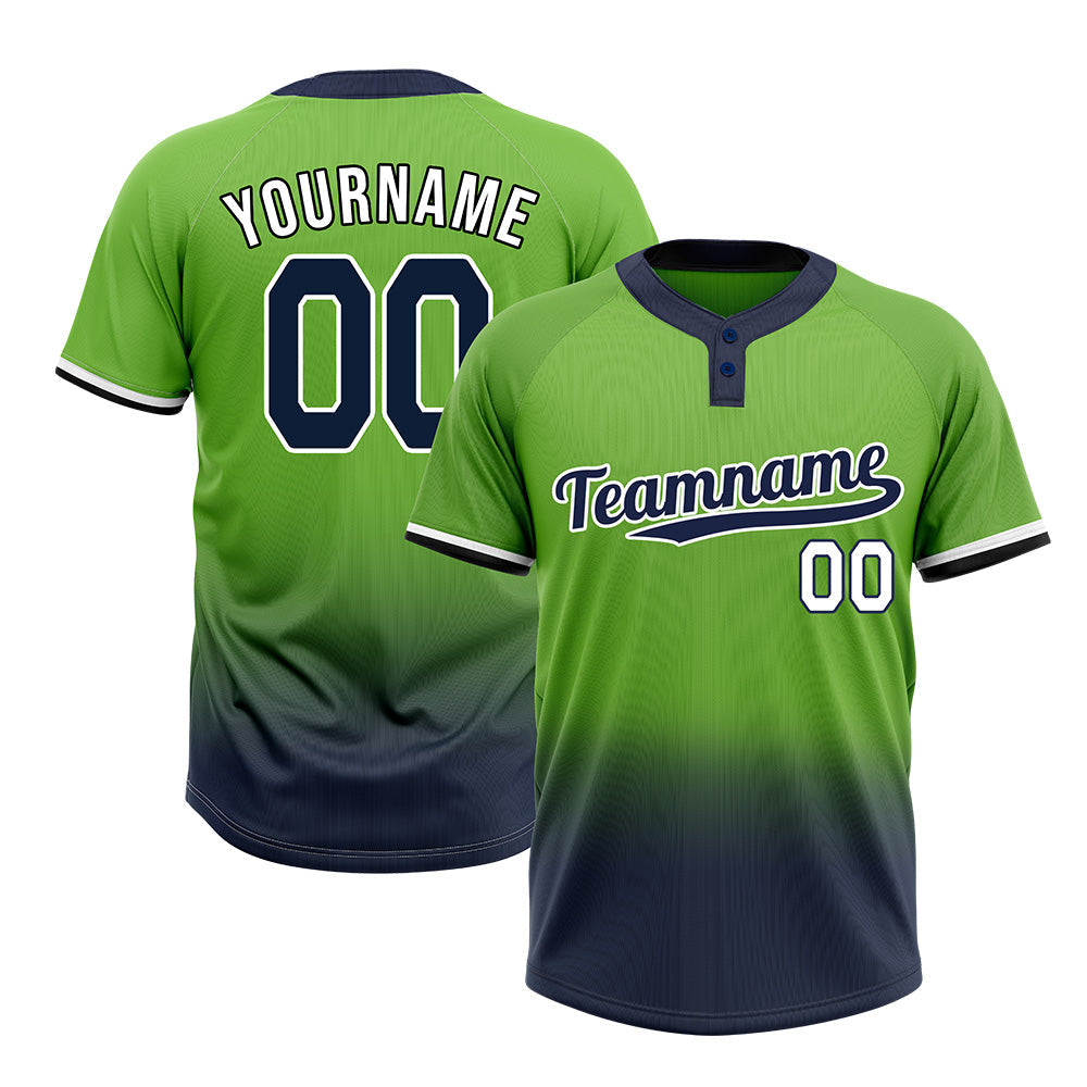 CUSTOM GREEN BLACK-WHITE TWO-BUTTON UNISEX SOFTBALL JERSEY