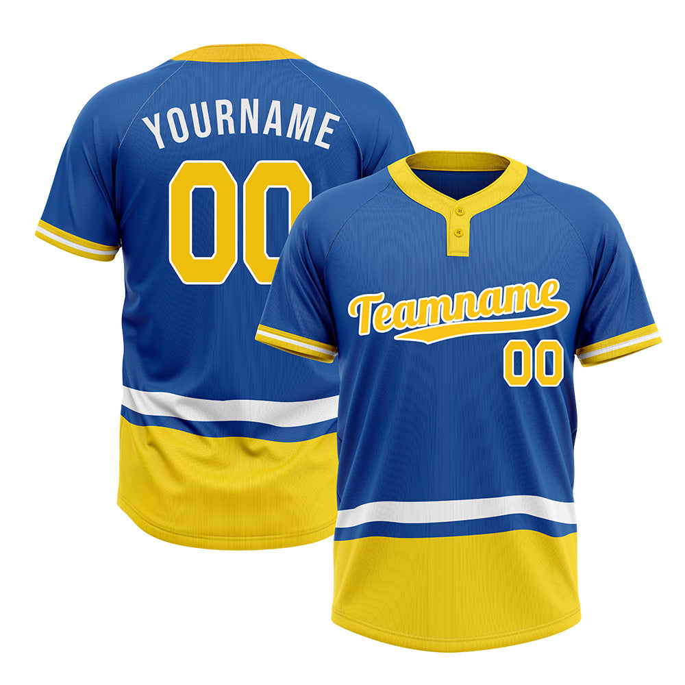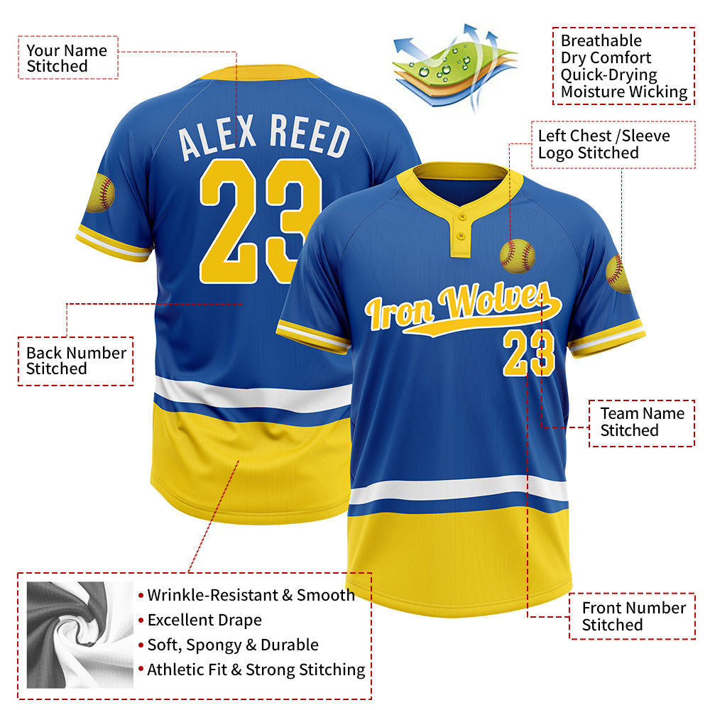 CUSTOM ROYAL GOLD-WHITE TWO-BUTTON UNISEX SOFTBALL JERSEY