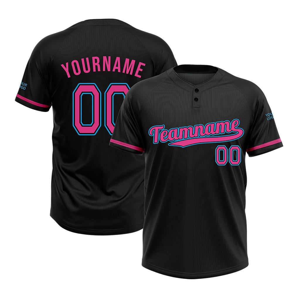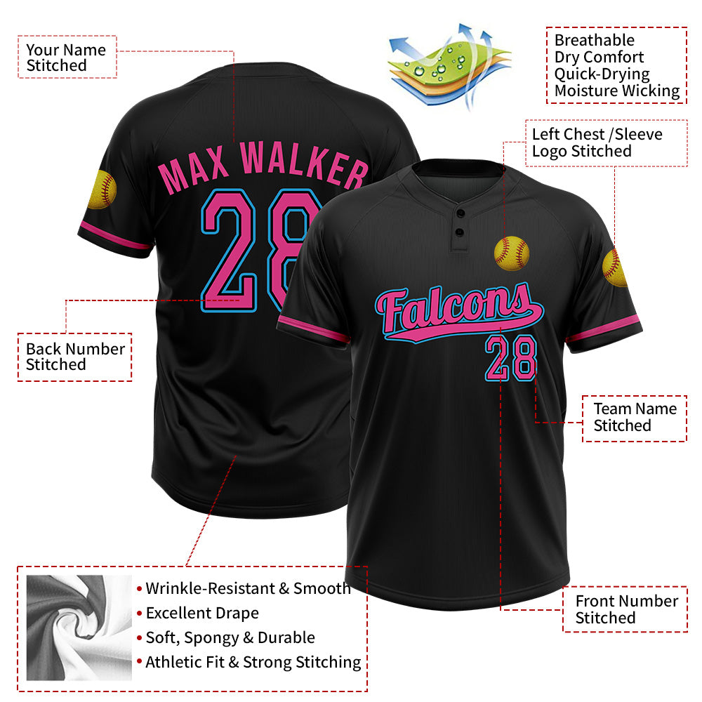 CUSTOM BLACK PINK-LIGHT BLUE TWO-BUTTON UNISEX SOFTBALL JERSEY