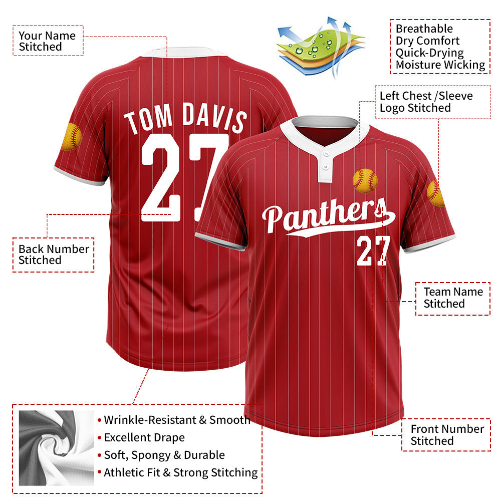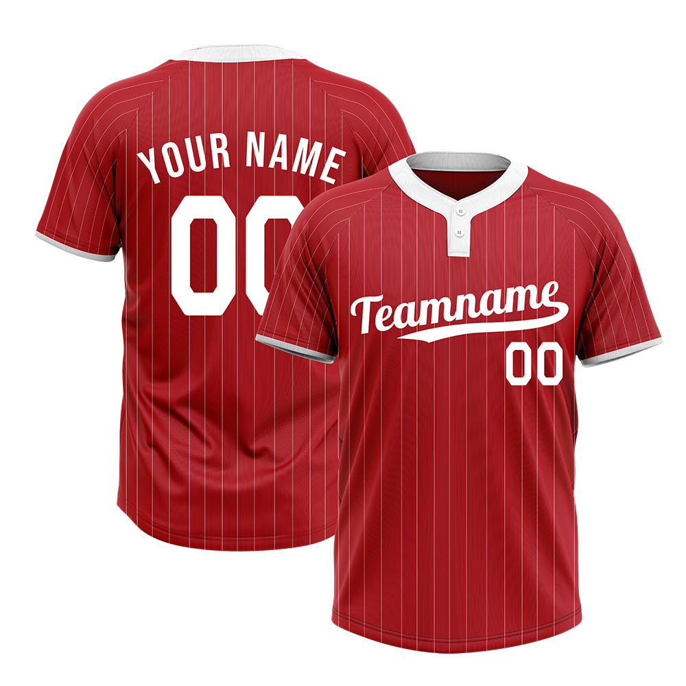 CUSTOM RED WHITE PINSTRIPE WHITE-GRAY TWO-BUTTON UNISEX SOFTBALL JERSEY