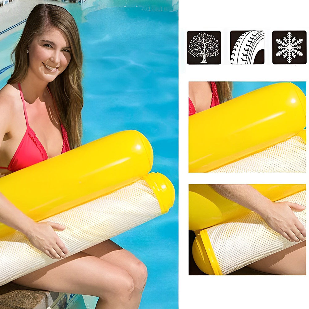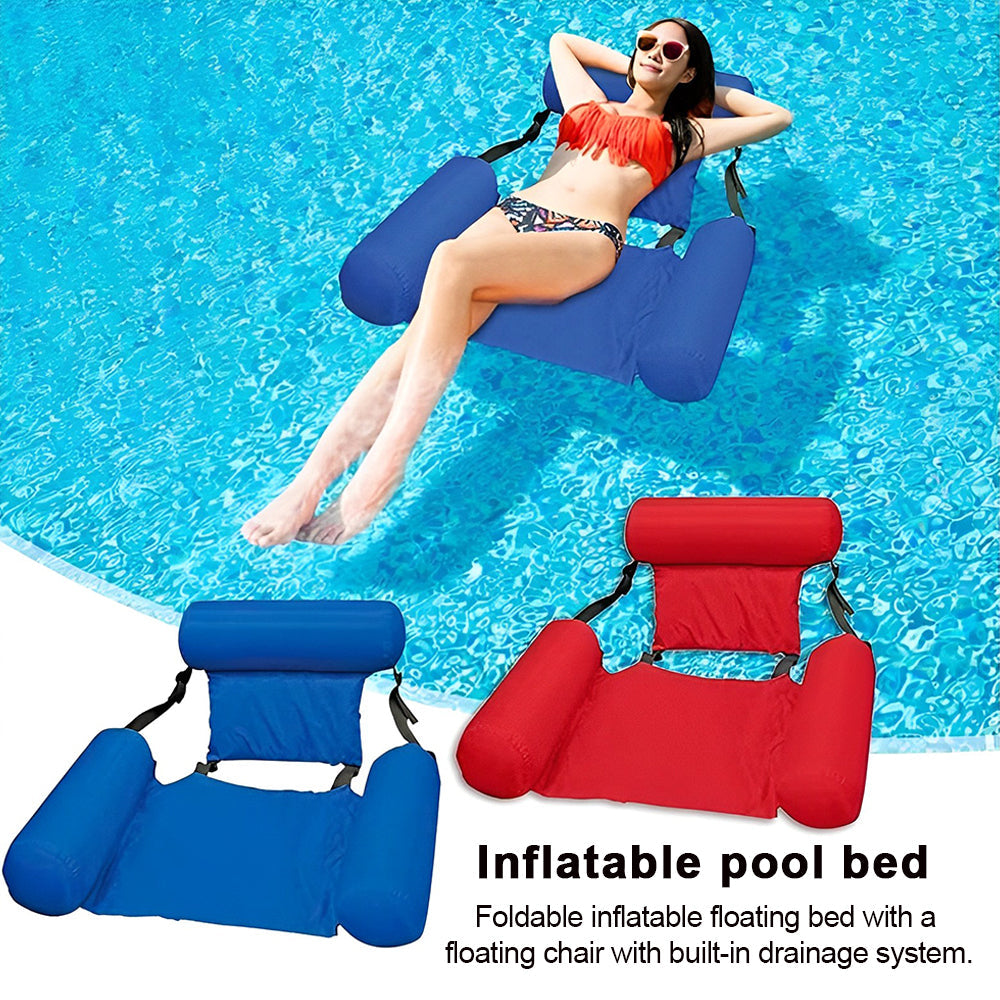 - Comfortable - The side arms and headrest feature built-in inflatable bladders made from durable vinyl that provide back and arm support for all day in the pool, floating on the lake or floating on the river. You'll always be halfway submerged in this floating lounge chair, making it easy to stay cool under the hot summer sun!