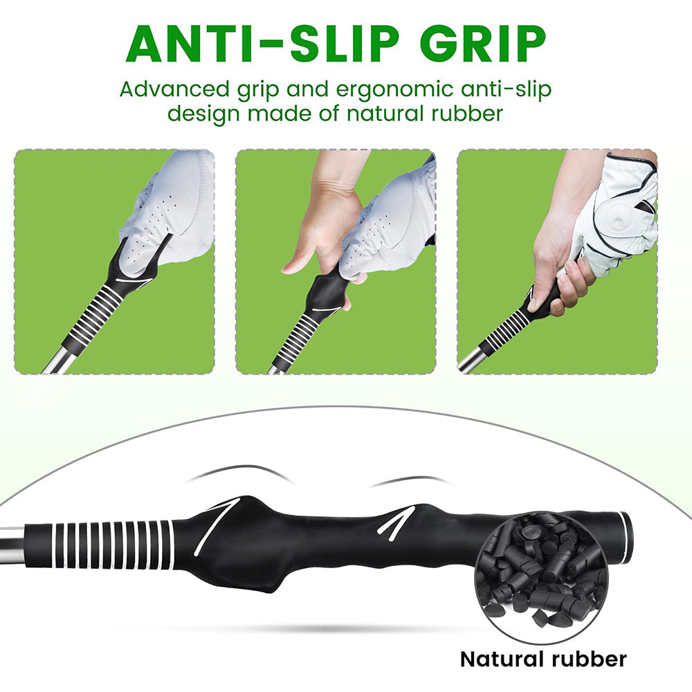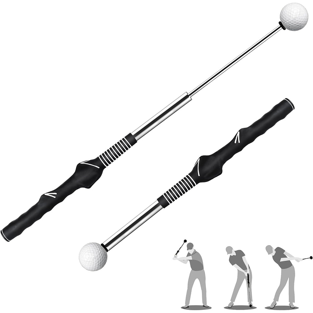 - 【Retractable Golf Swing Trainer】Our golf swing trainer with retractable and sound design provides a realistic swing feeling. When you swing down, the club will extend and make a "click" sound to determine whether your swing is standard, which can improve your swing rhythm,balance, flexibility, speed and power.