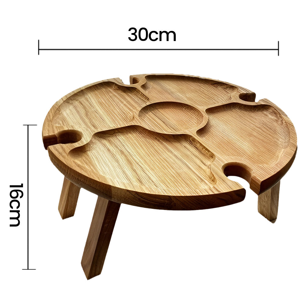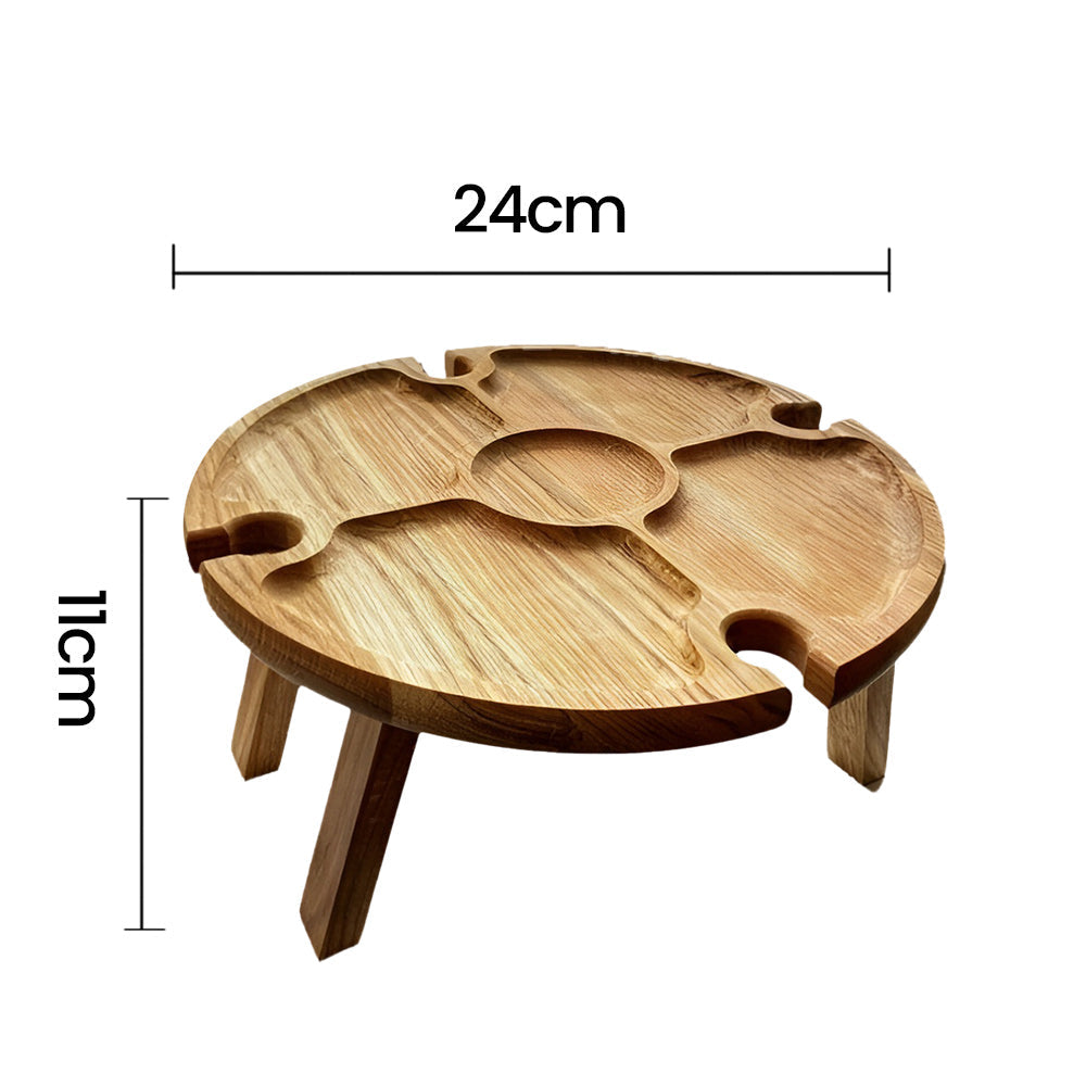 - The table will ideally take its place both at the dining table and on a cozy carpet near the fireplace and even on a picnic. It’s two in one, like a wine table + compartmental dish for cheese and fruit.