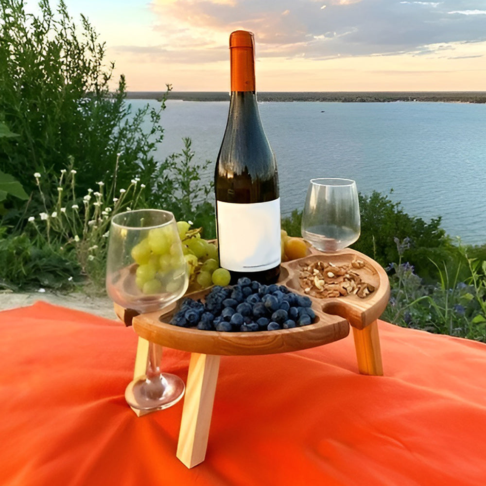 - 🥂Organizer-table made of wood. It is suitable for all those who like to enjoy a glass of wine with delicious cheese or fruit.
