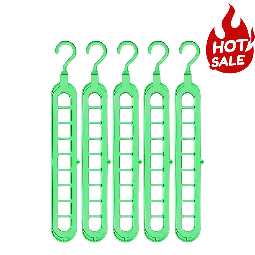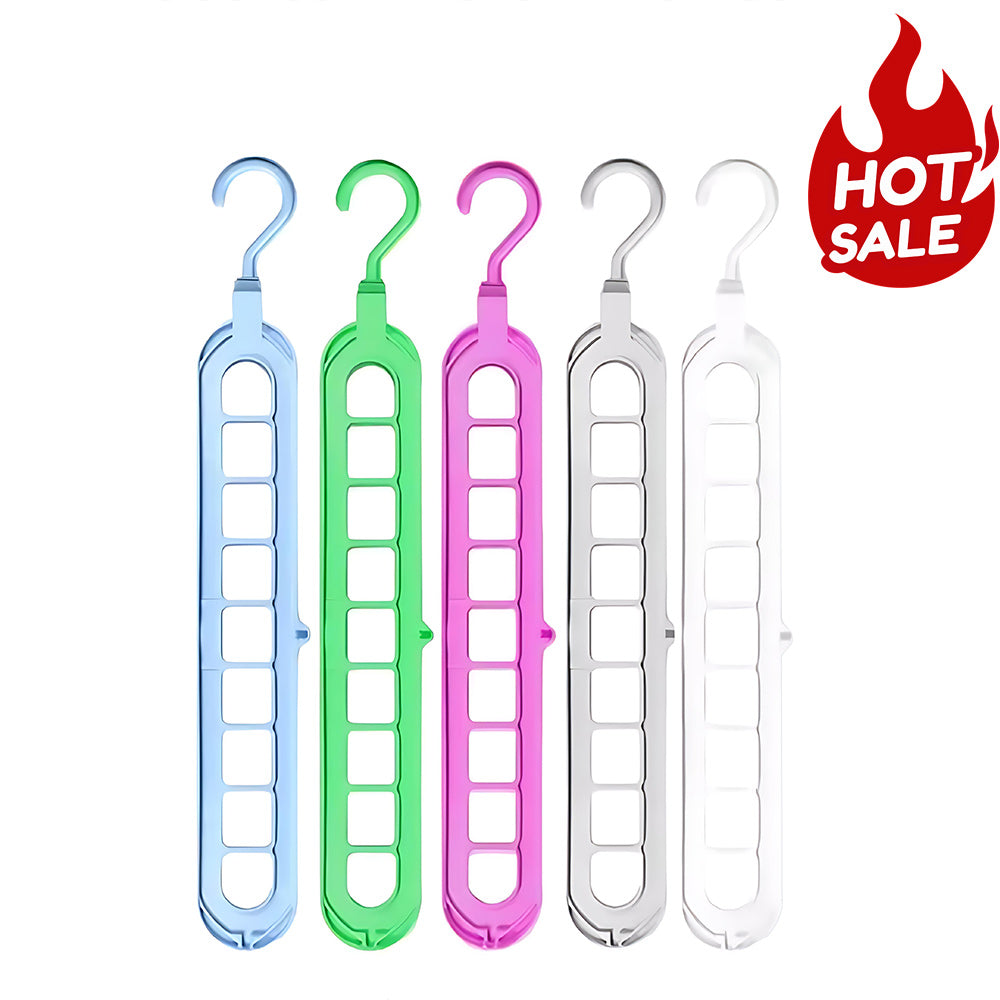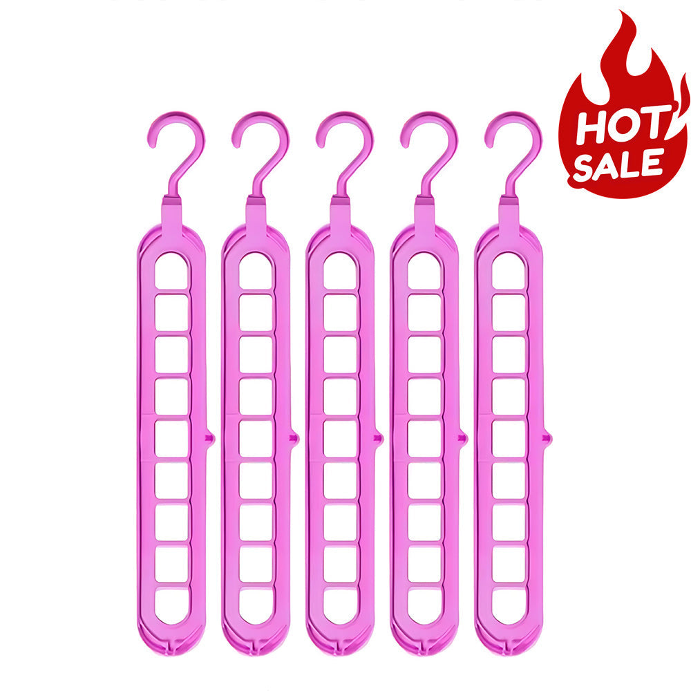 - Practical Storage: The hanger organizer has 5 items in different colors. Each shelf has 9 holes, that is, each hanger can hold 9 pieces of clothing! The various colors in the set are perfect for any wardrobe design. With the foldable hangers, you can easily organize your clothing storage space. The functions of the hangers do not stop there, you can also easily mix and match various colors to create your outfits a few days or weeks in advance