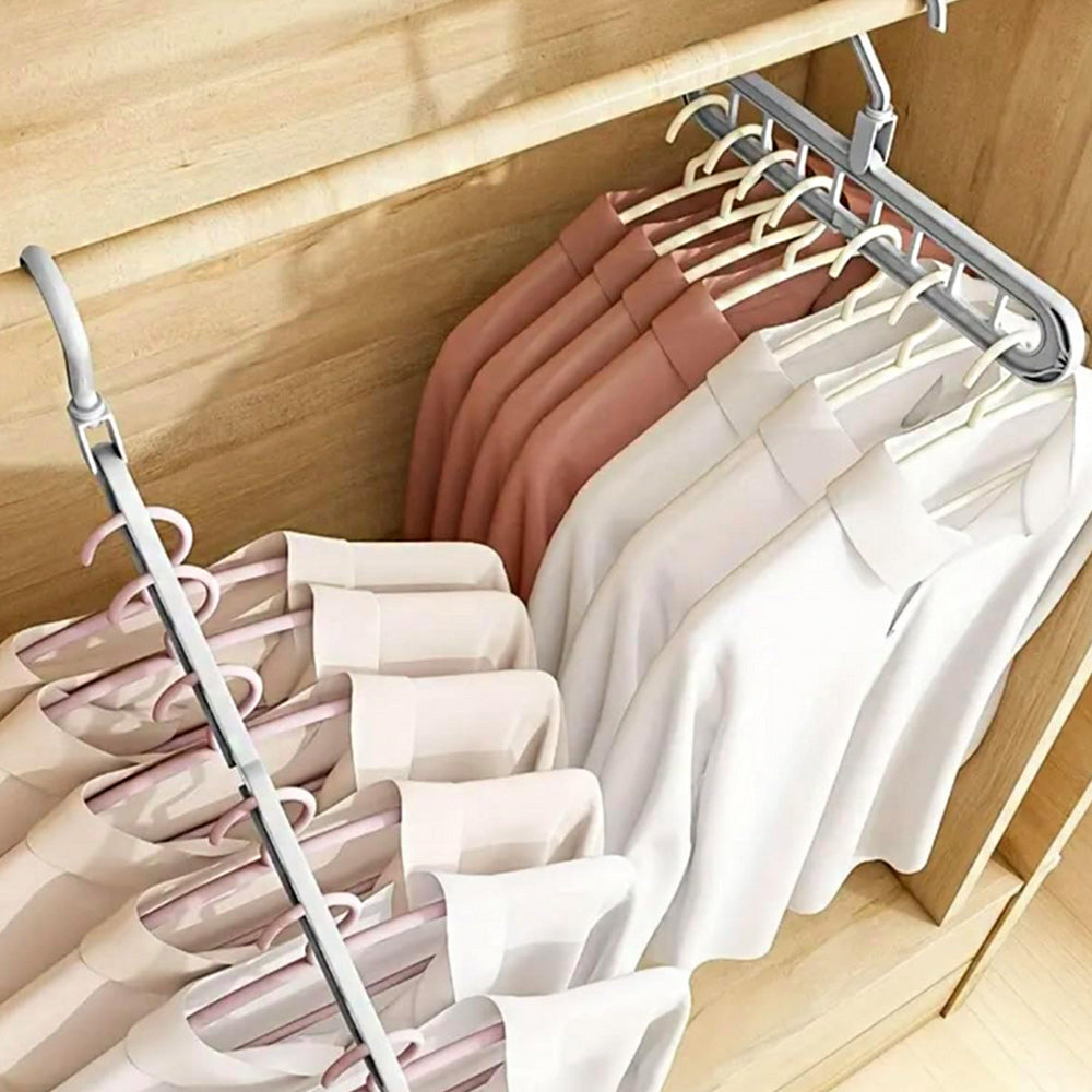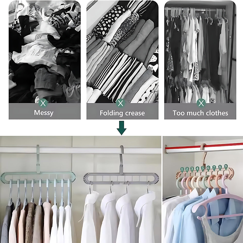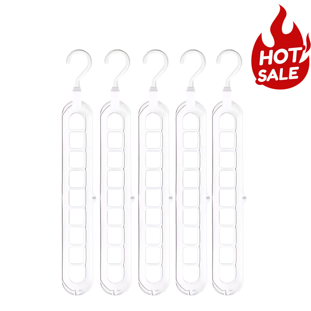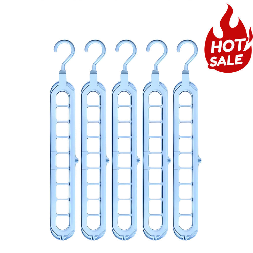 - Practical Storage: The hanger organizer has 5 items in different colors. Each shelf has 9 holes, that is, each hanger can hold 9 pieces of clothing! The various colors in the set are perfect for any wardrobe design. With the foldable hangers, you can easily organize your clothing storage space. The functions of the hangers do not stop there, you can also easily mix and match various colors to create your outfits a few days or weeks in advance