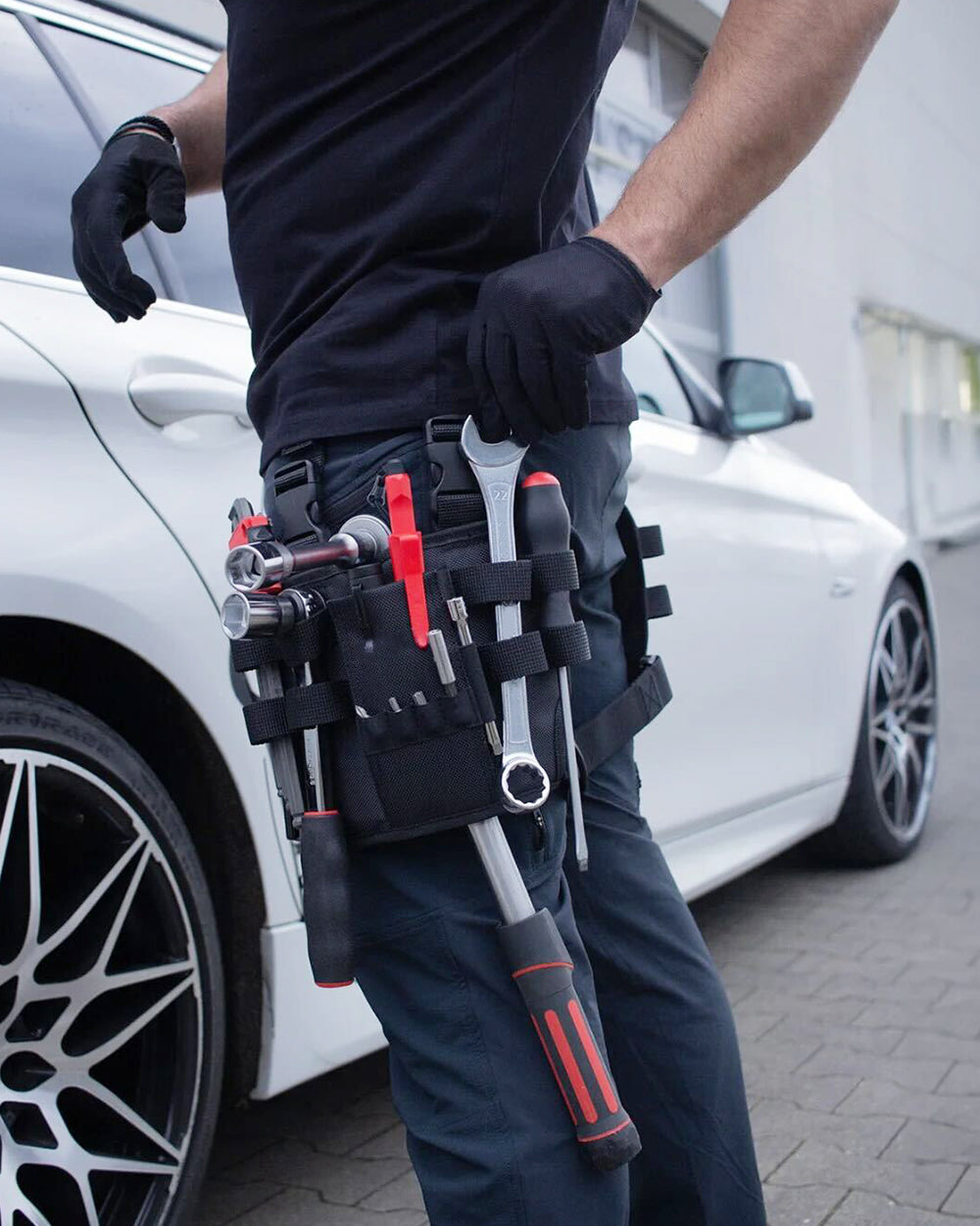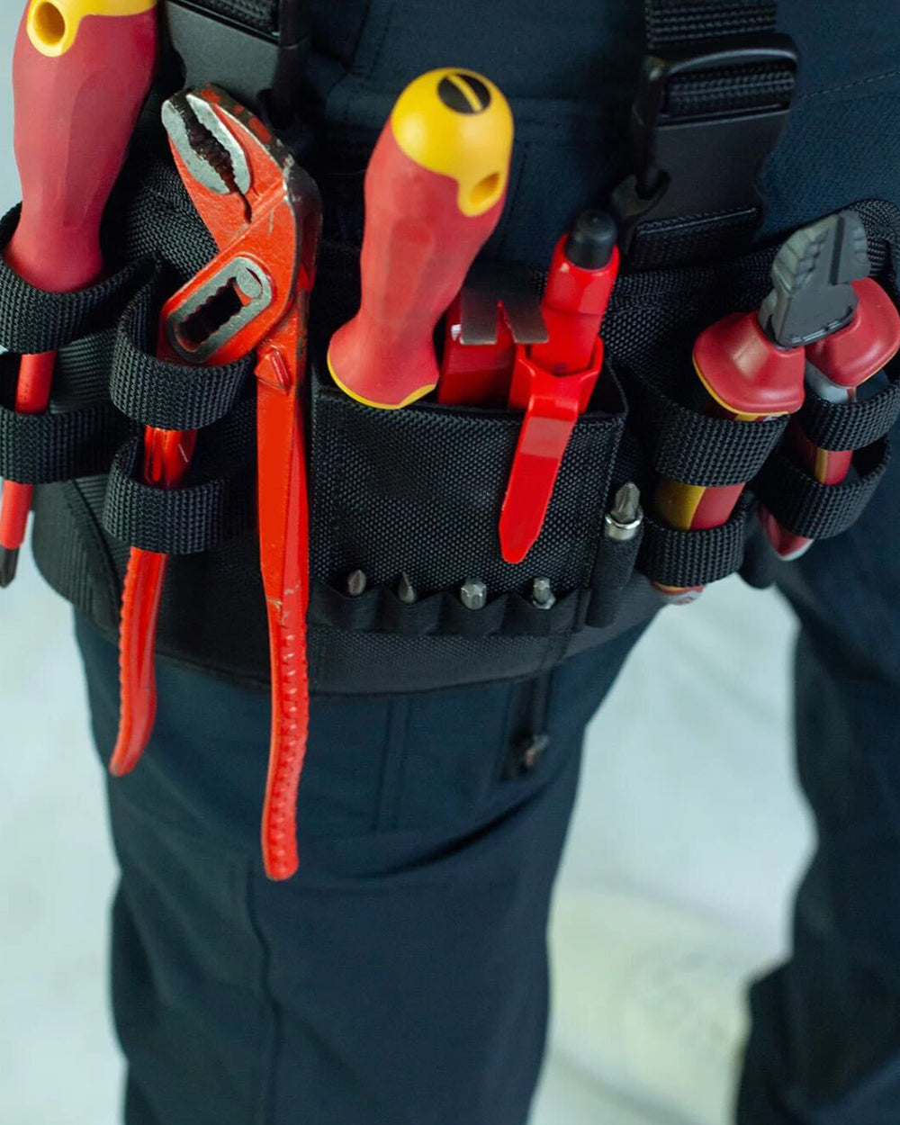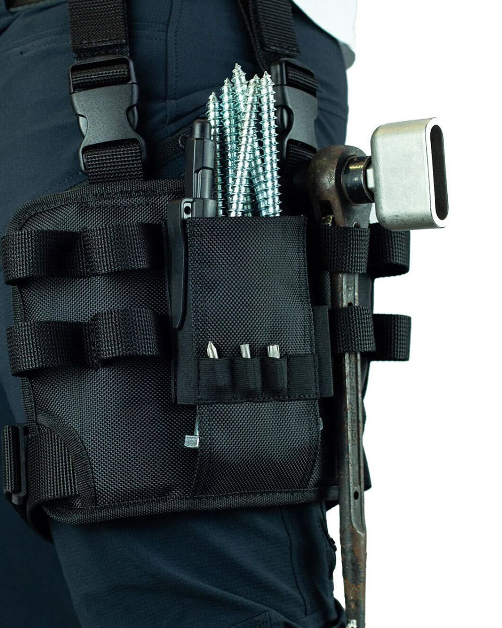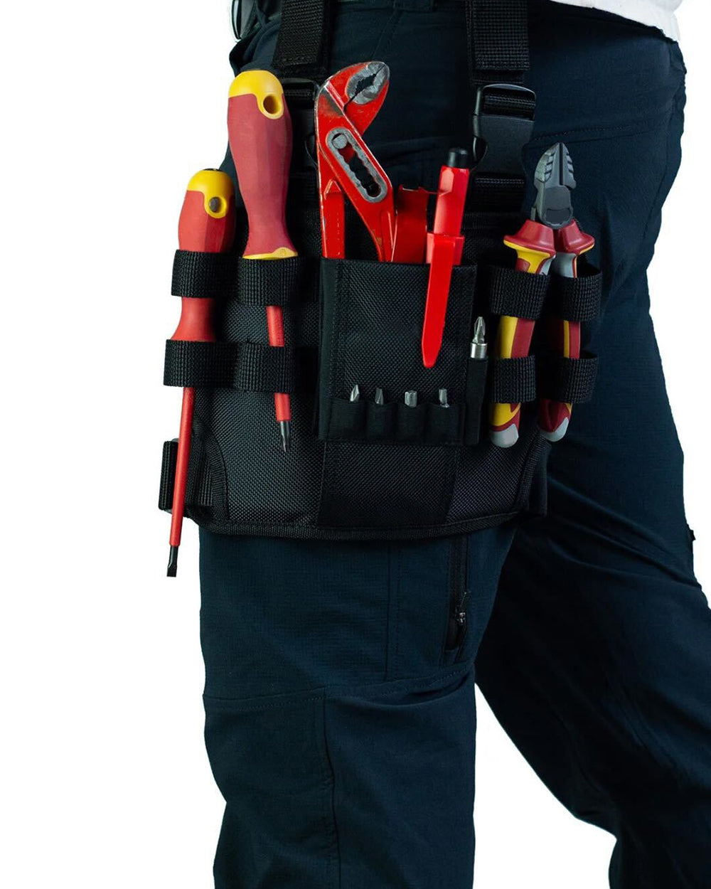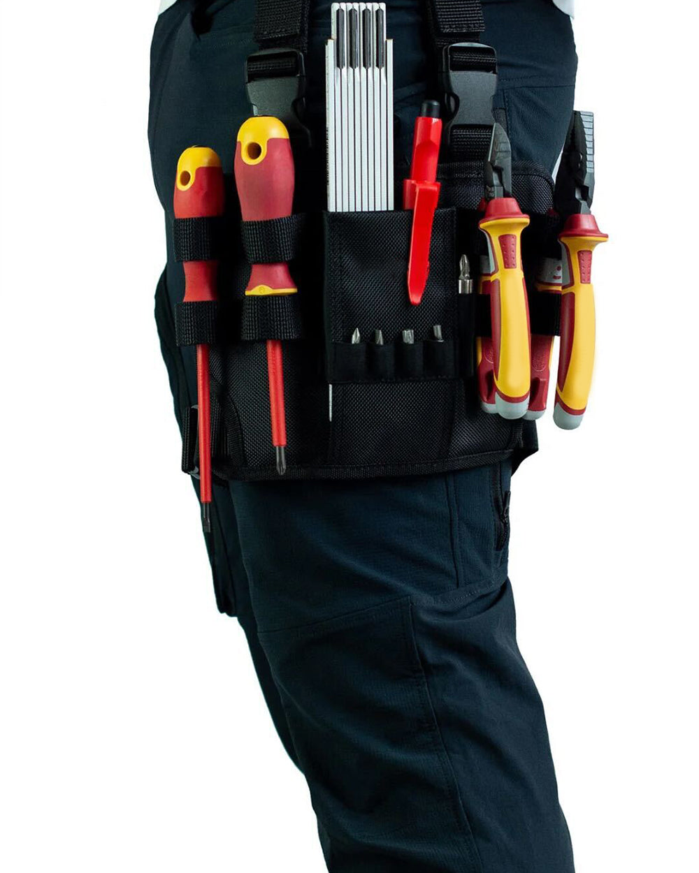 - Integrated Bit Holders: Featuring space for 4 bits and a bit extension, this bag is ideal for working with cordless or bit screwdrivers.