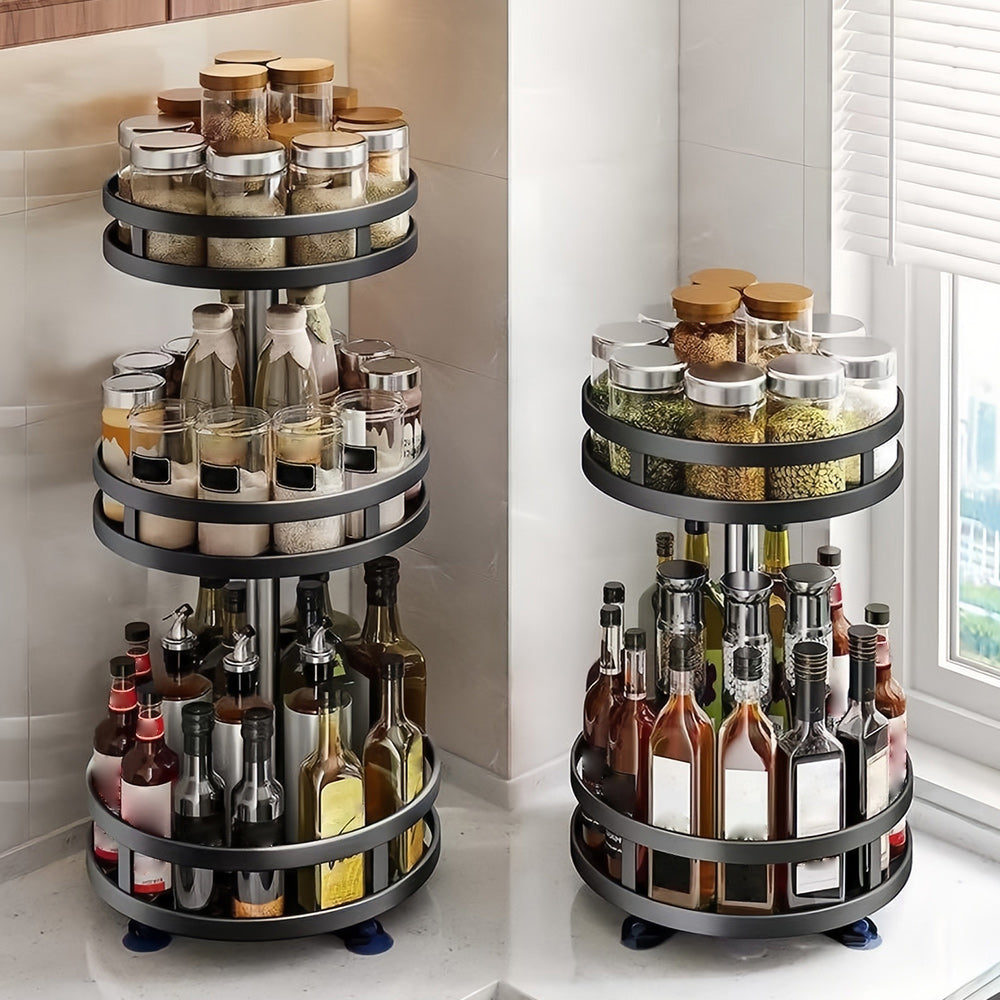 - Stable, 360° rotating structure: No matter how many jars and other items you place on the rotating organizer, they will never fall off. The sturdy structure makes it the best helper for home life!