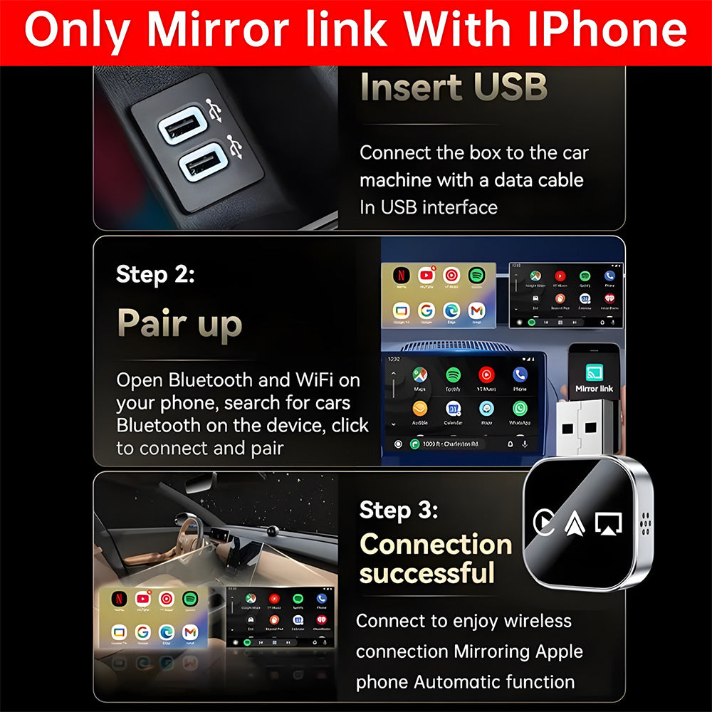 2026 Upgrade 3 in 1 Screen Mirror iOS Phone, wired to wireless Carplay adapter