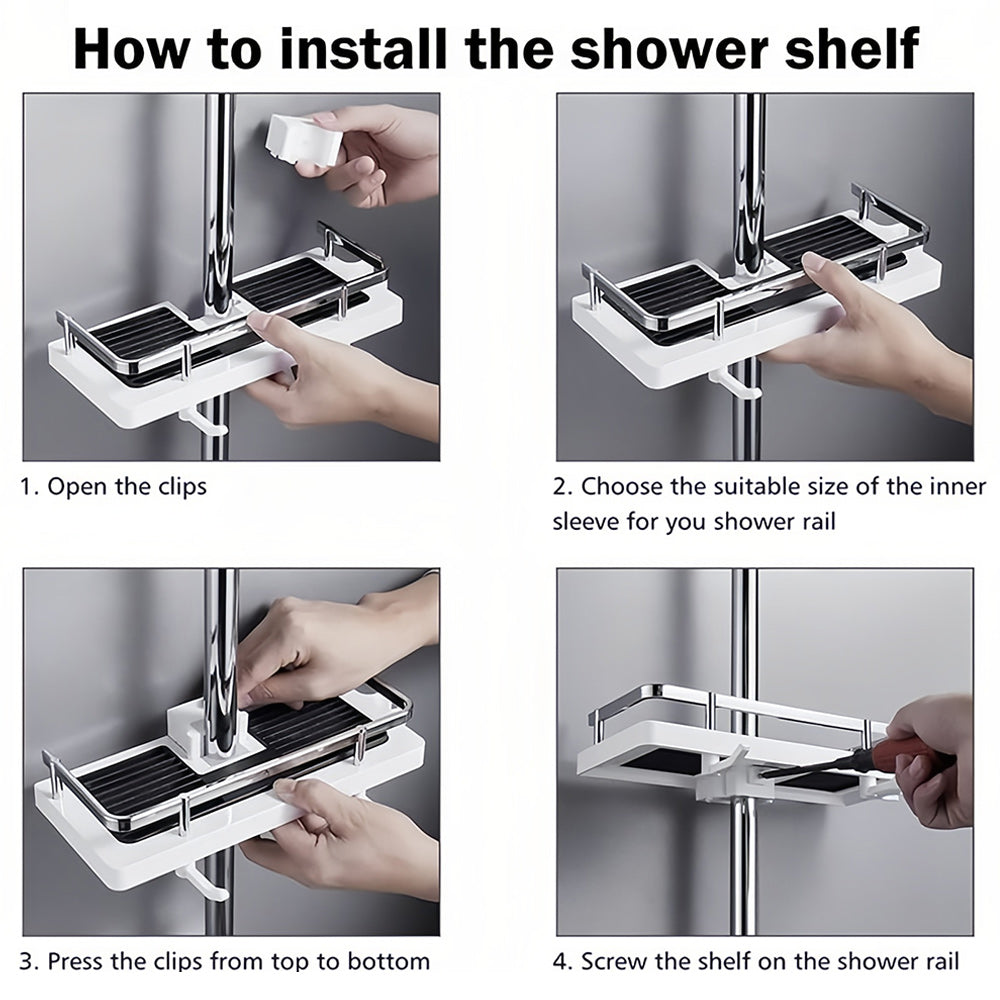 - Adjustable Height - The Shower Shelf can hold shower,gel,shampoo,facial cleanser,shower foam and other items.The height of the tray is adjustable.You can adjust the height of the Bathroom Shelf according to your habits.