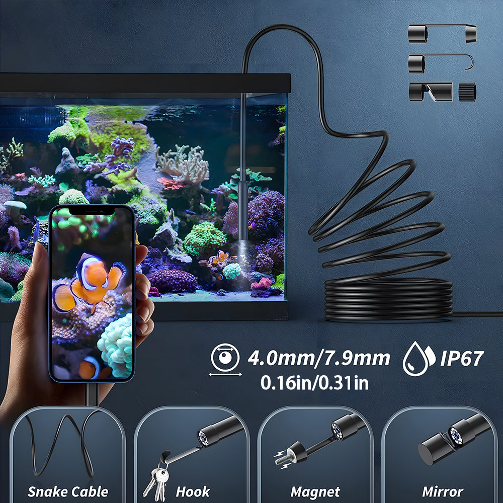 - Easy to Use: Small size, light weight, front camera housing diameter is 7.0mm, equipped with a flexible semi-rigid cable, which can bend and keep its shape to enter various narrow places, such as curved holes or pipes.