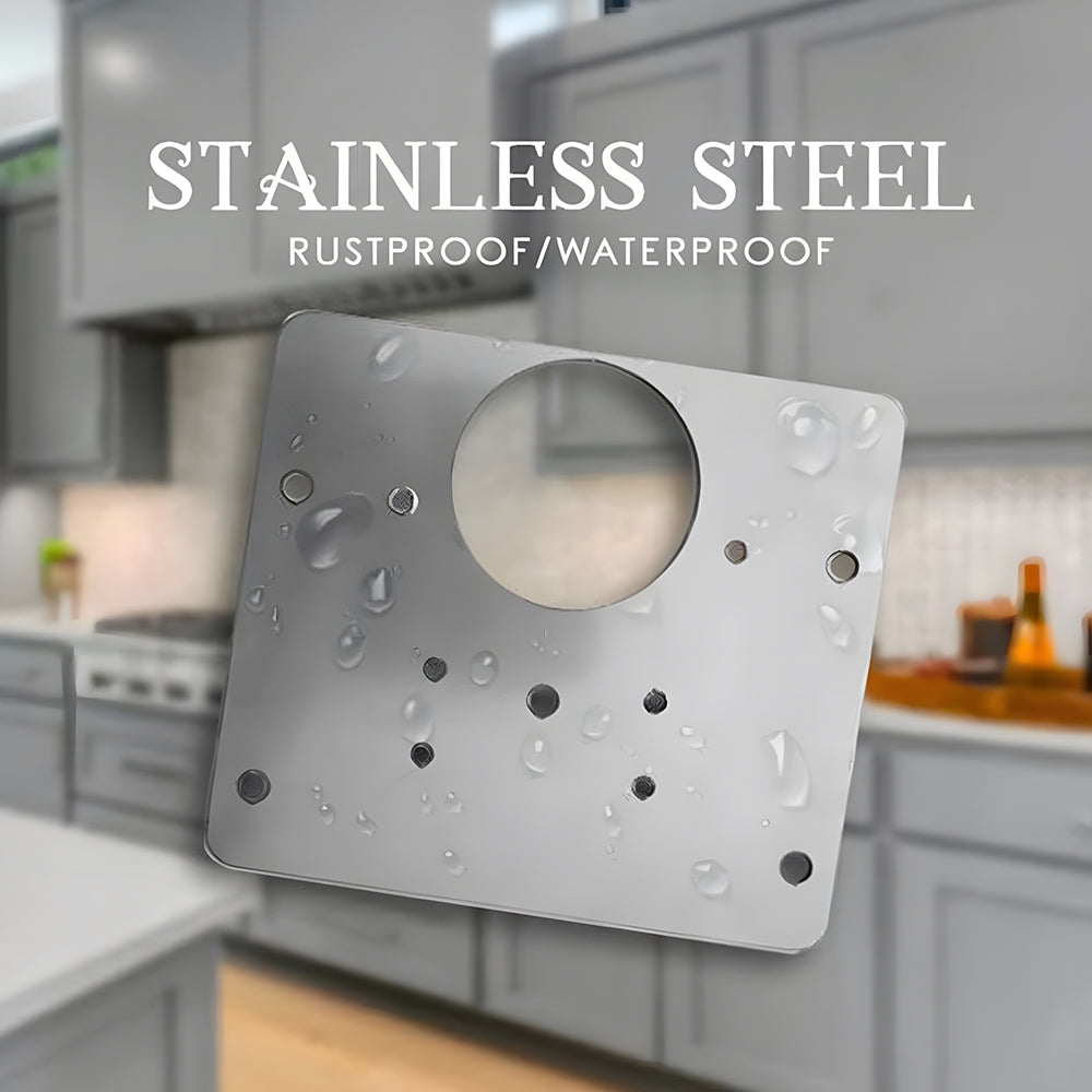 - ăSleek DesignăThe design of wide sleek silver plate perfectly covers the rusted area, restoring your cabinets into a brand new, clean ones.