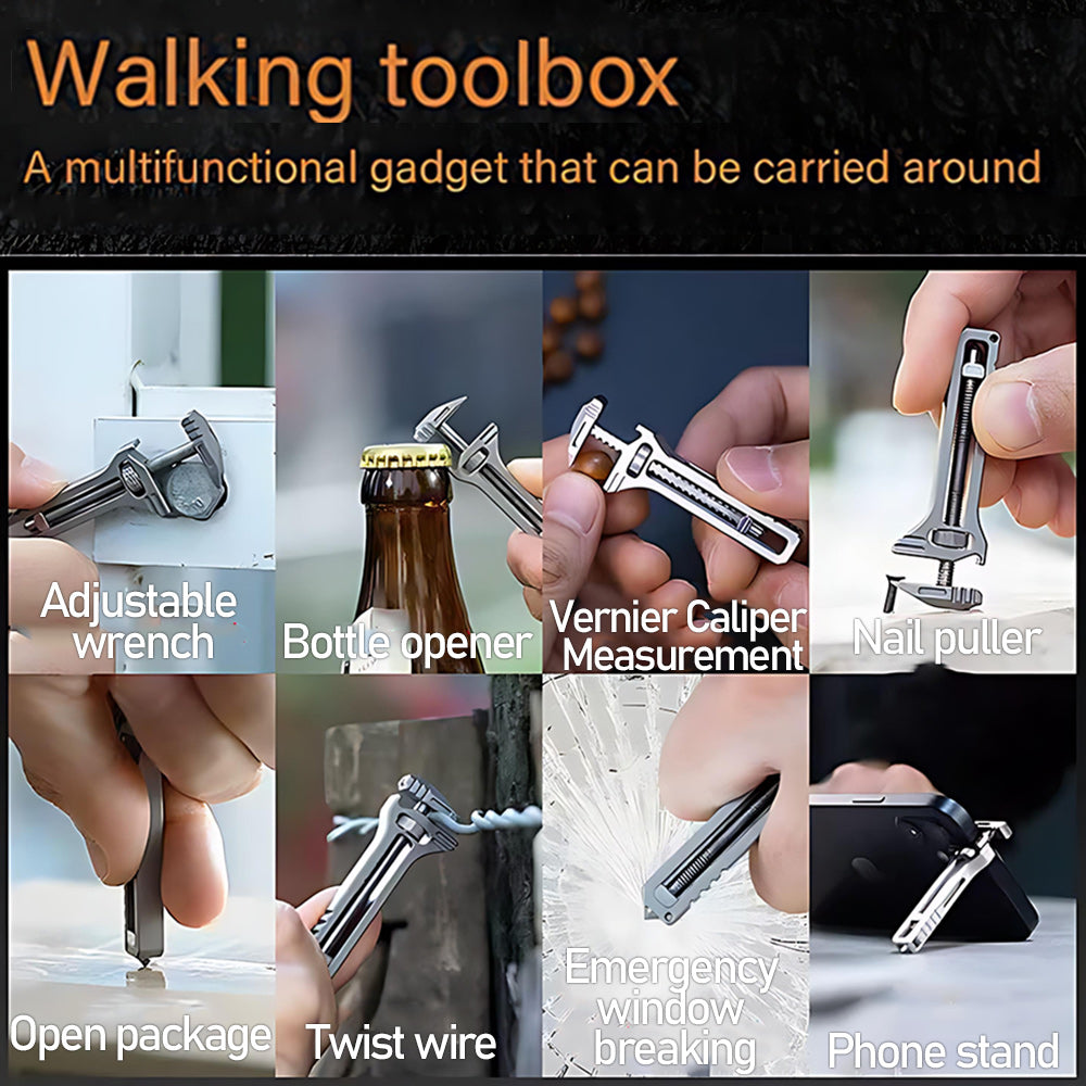 - 【Compact Titanium Multitool】The titanium multi tool wrench can be used as a beer bottle opener, an adjustable wrench suitable for all kinds of nuts and bolts, and a nail puller, and the built-in caliper can be used for precise measurement.
