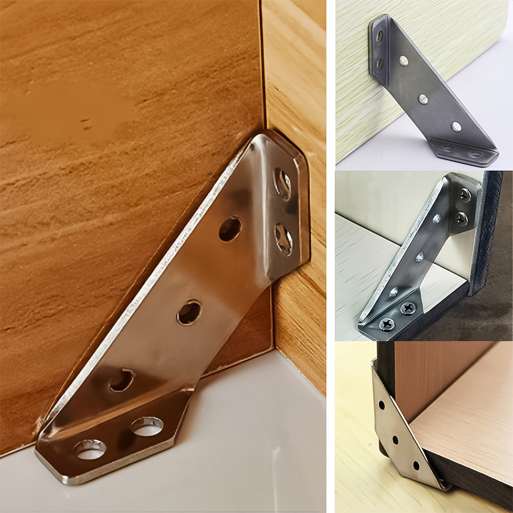 - 【APPLICATIONS】- Triangular angle brackets is widely use for multi-angle joint fastener, shelf support for desk edge, box, wood beam.