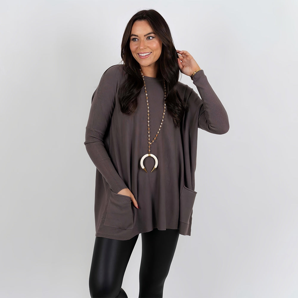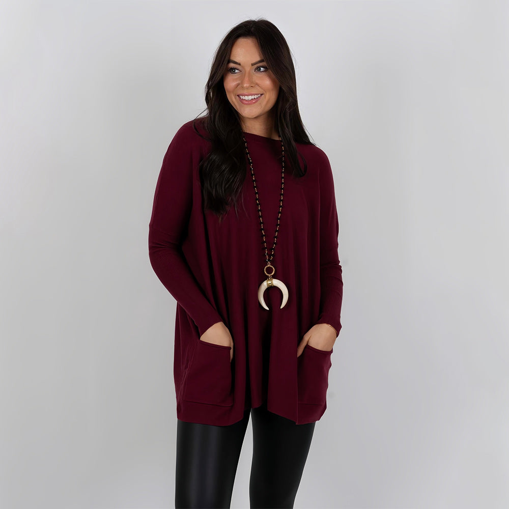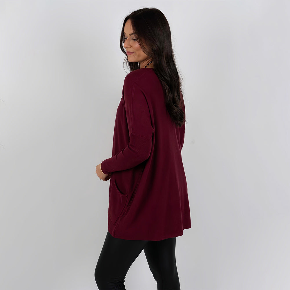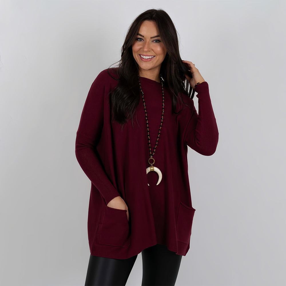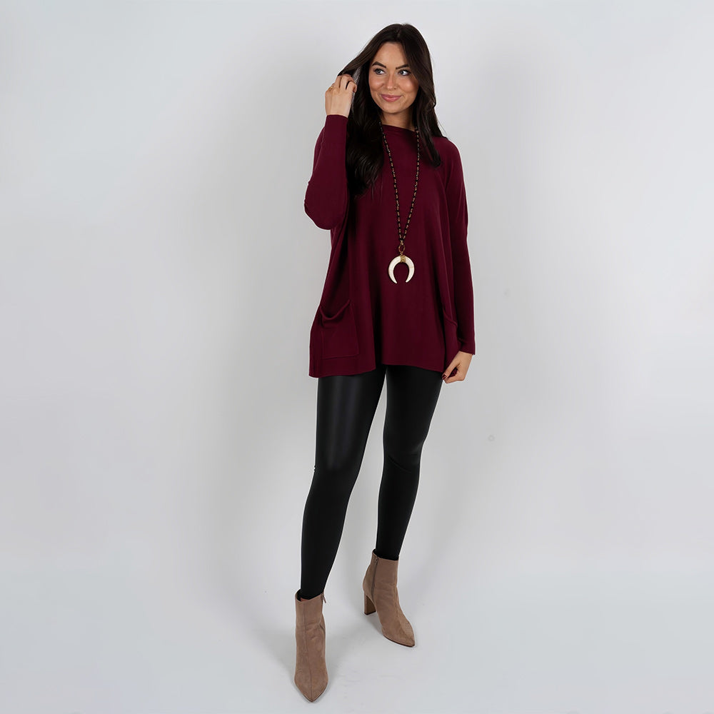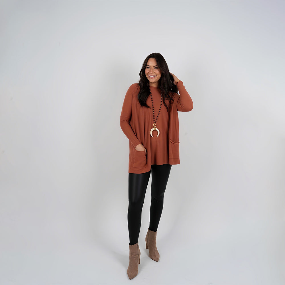 You'll be completely smitten with this gorgeous sweater. This sweater has an oversized fit with front pockets and a crew neck!