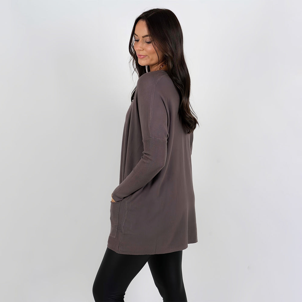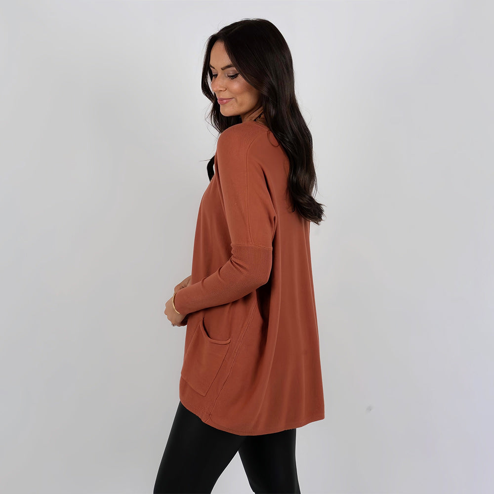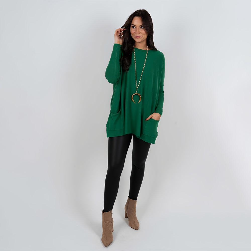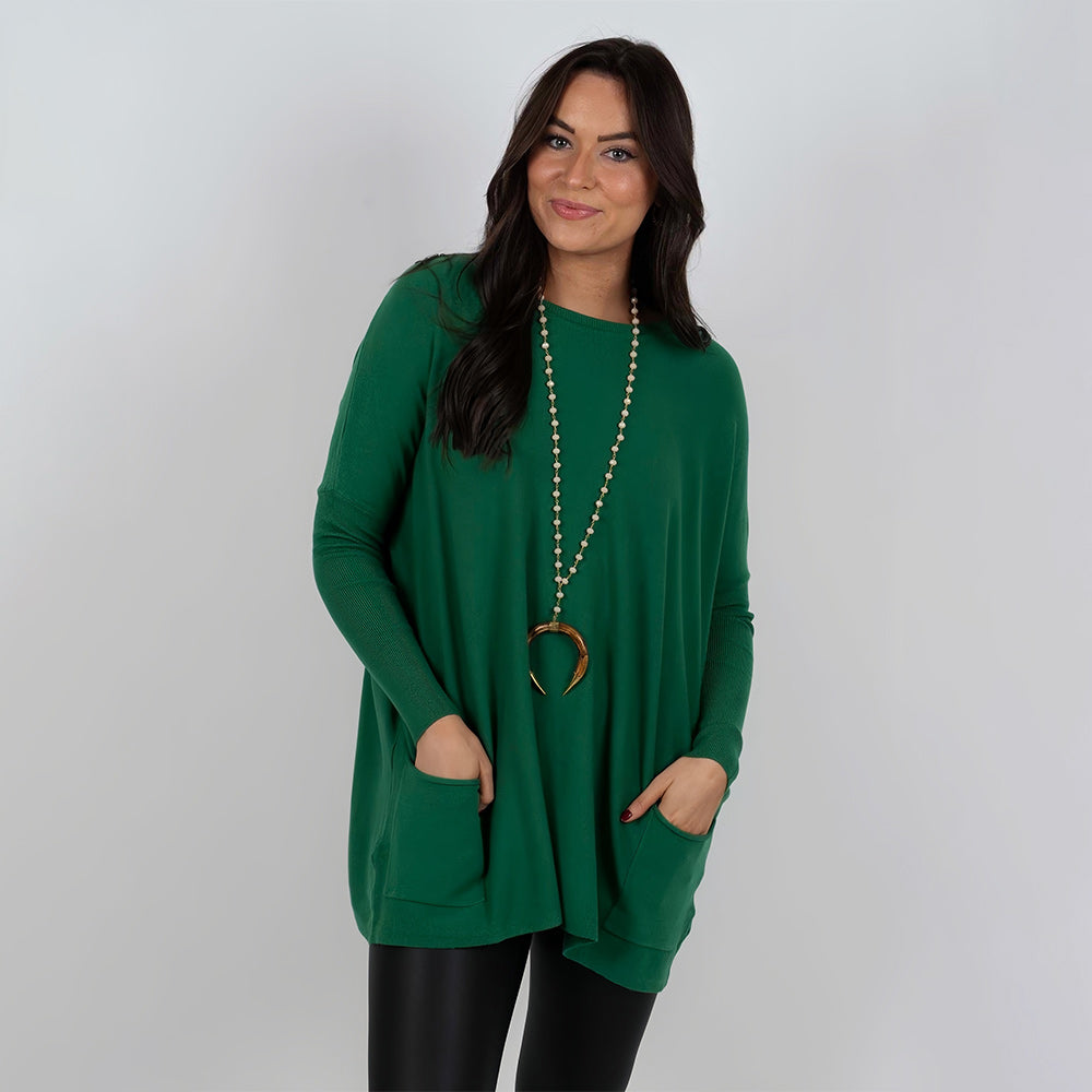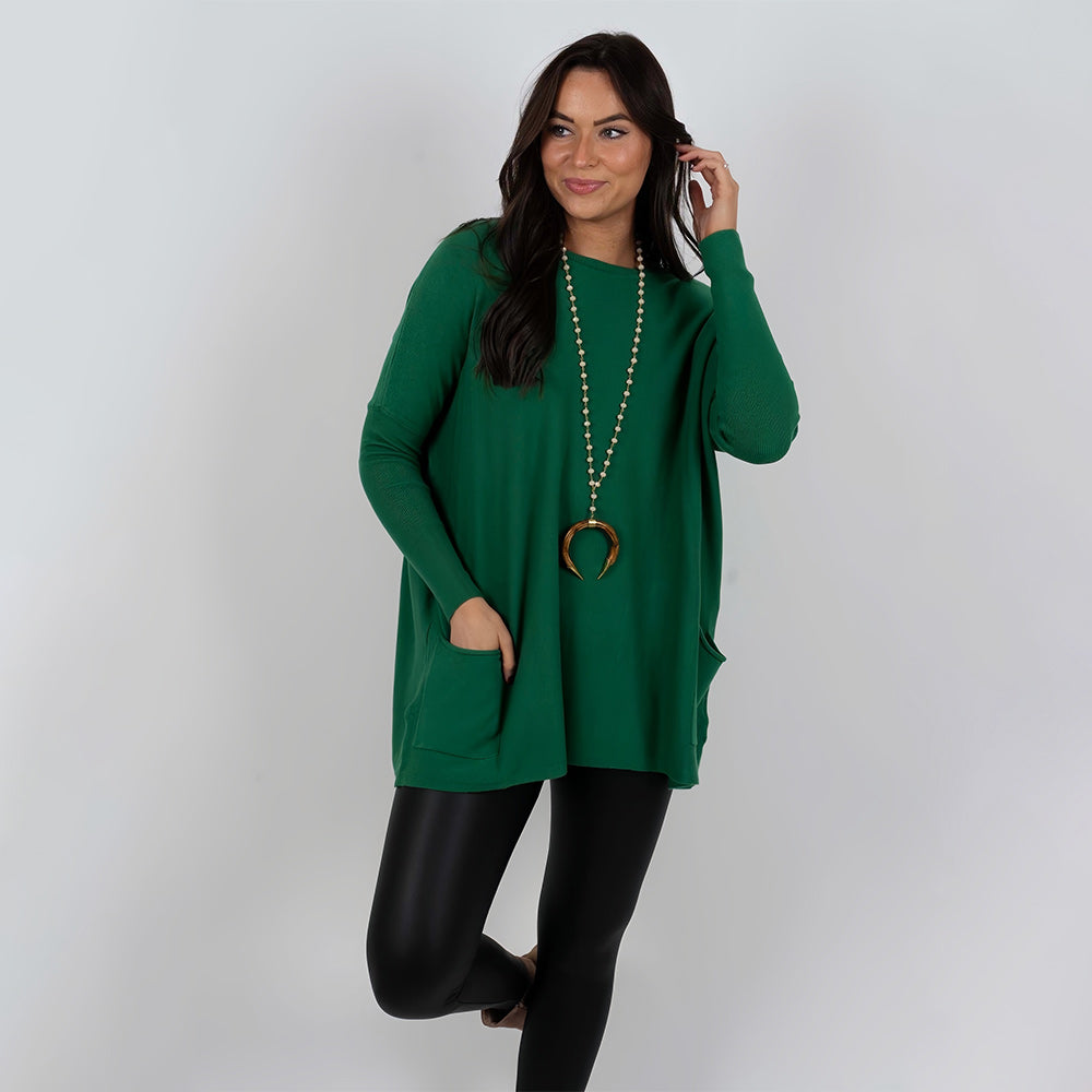 You'll be completely smitten with this gorgeous sweater. This sweater has an oversized fit with front pockets and a crew neck!