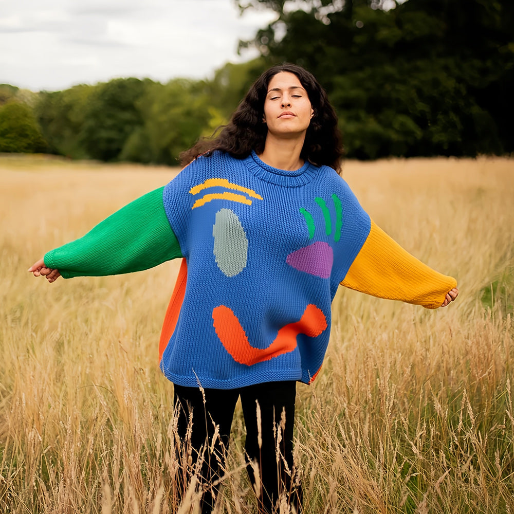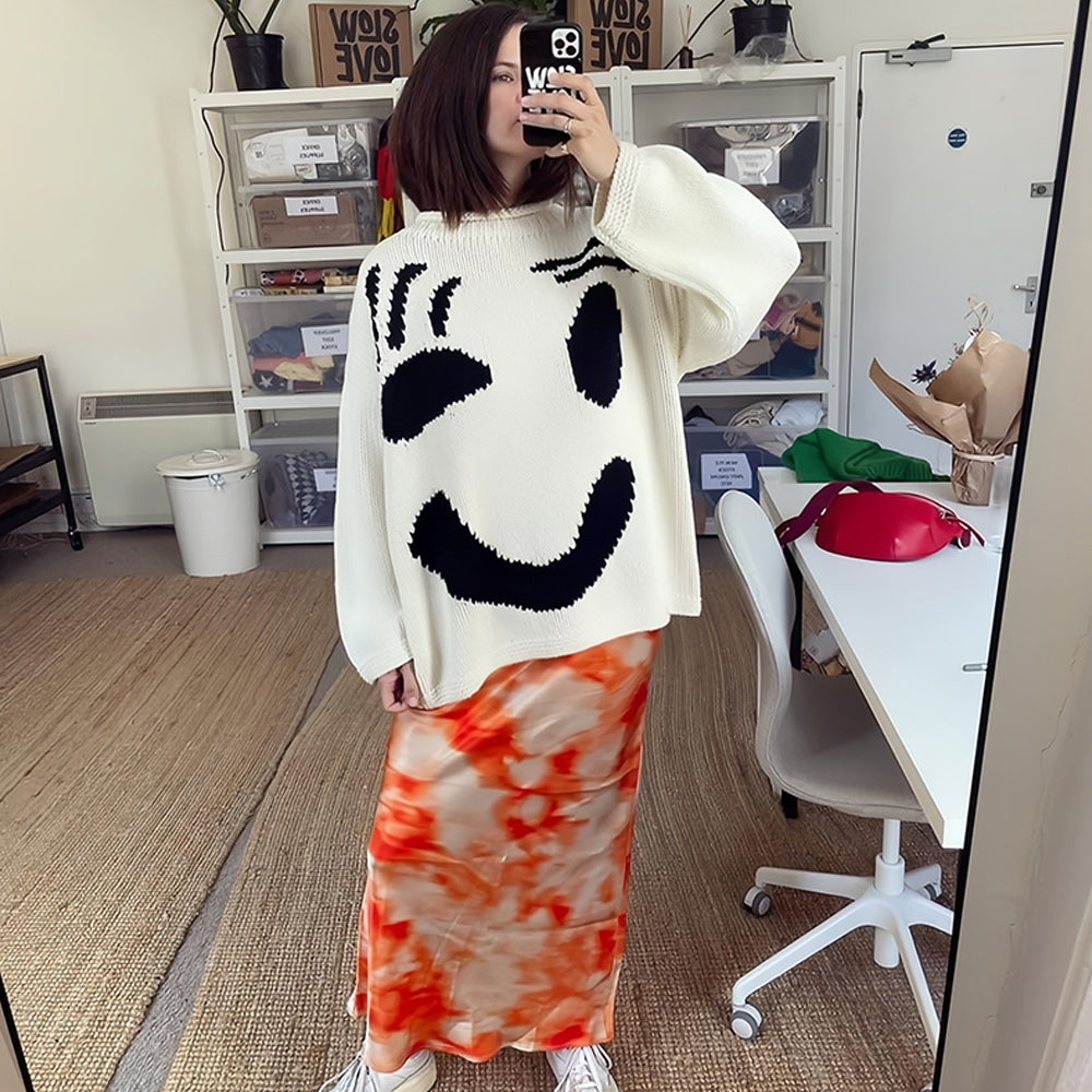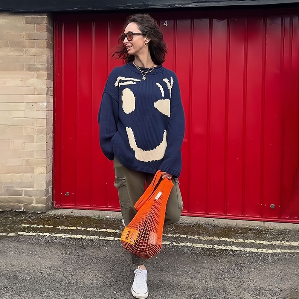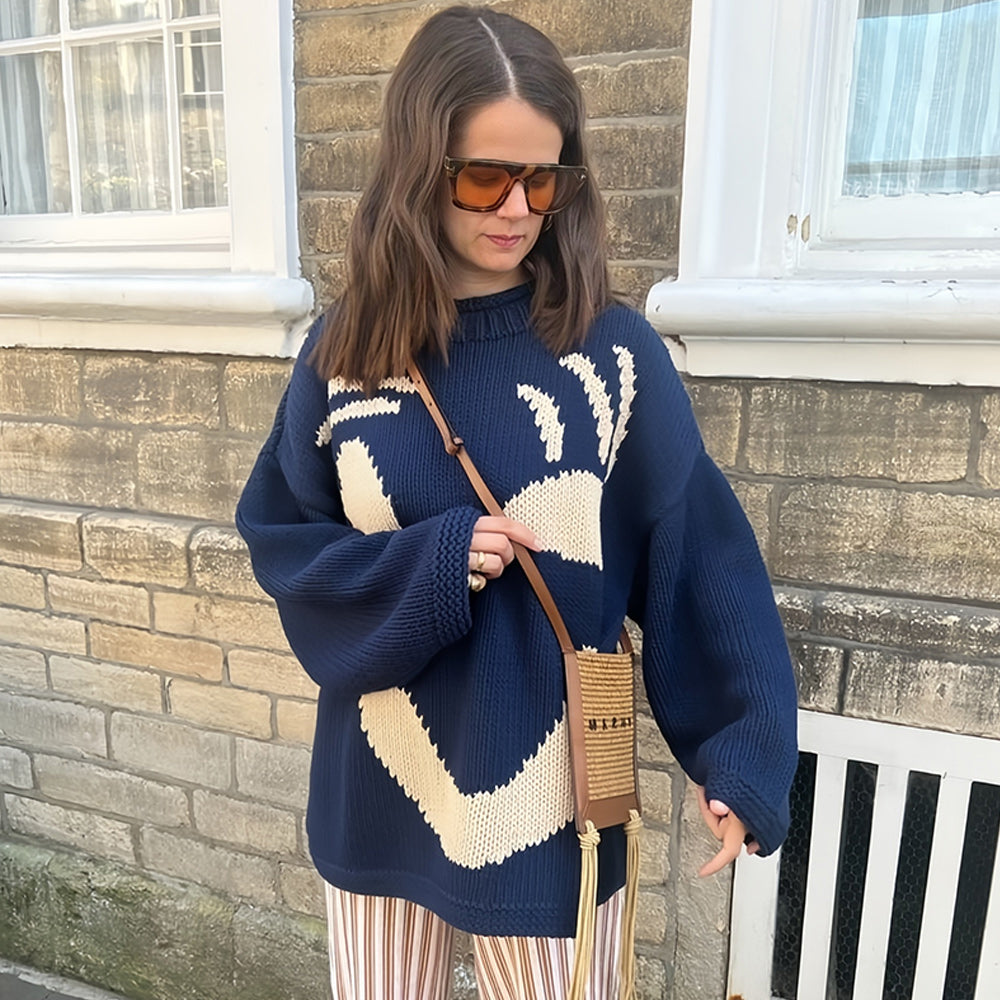 - The oversized jumper shape is boyfriend style, high level slouchy and the perfect knitted jumper for anyone wanting to feel comfy.