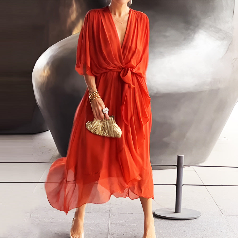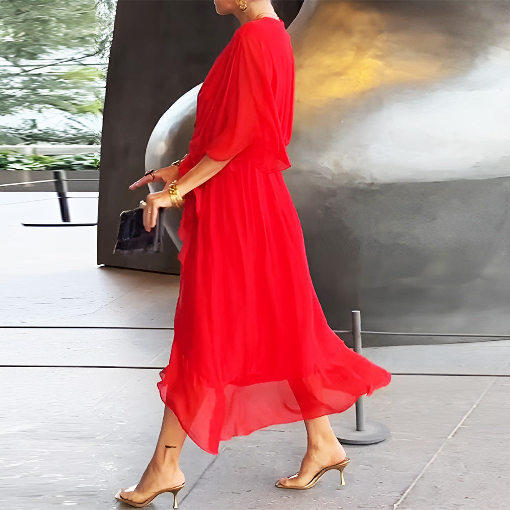 💃Stylish and Elegant V-Neck Chiffon Dress✨