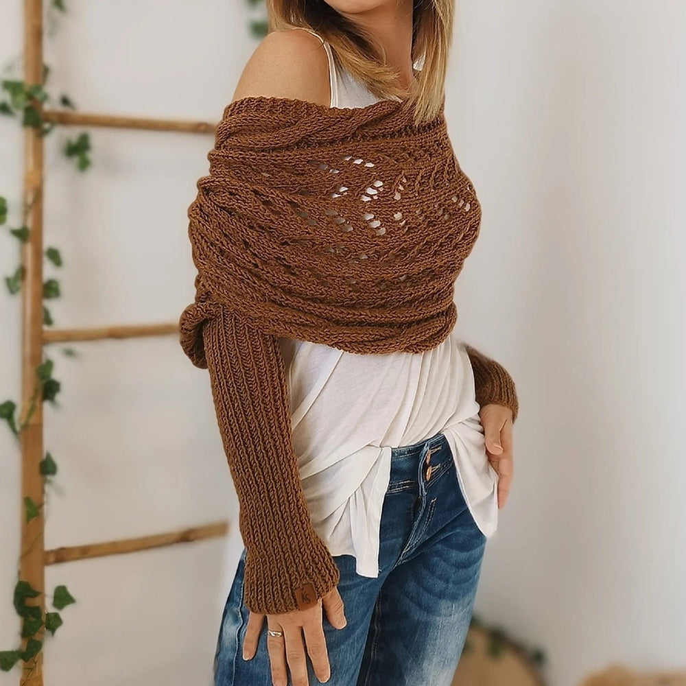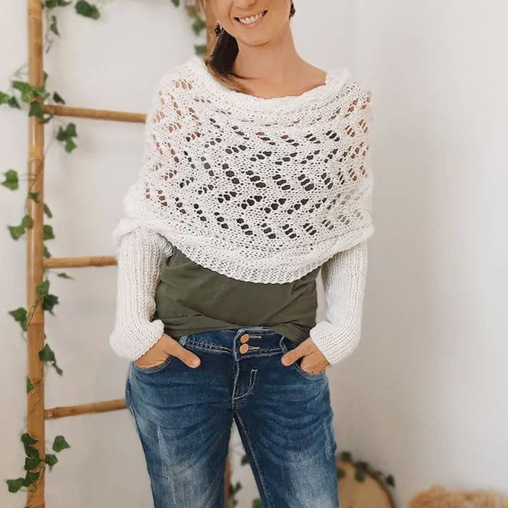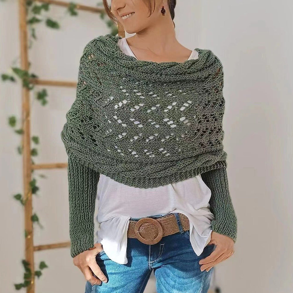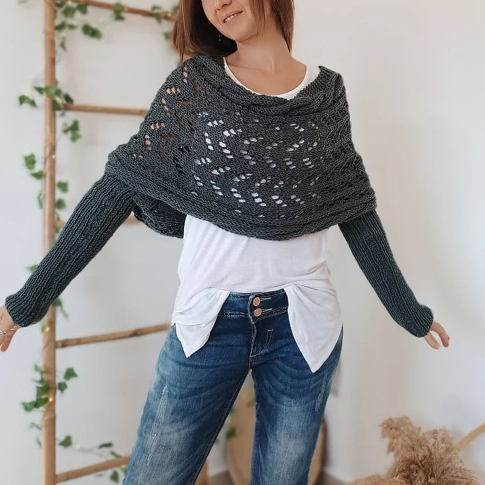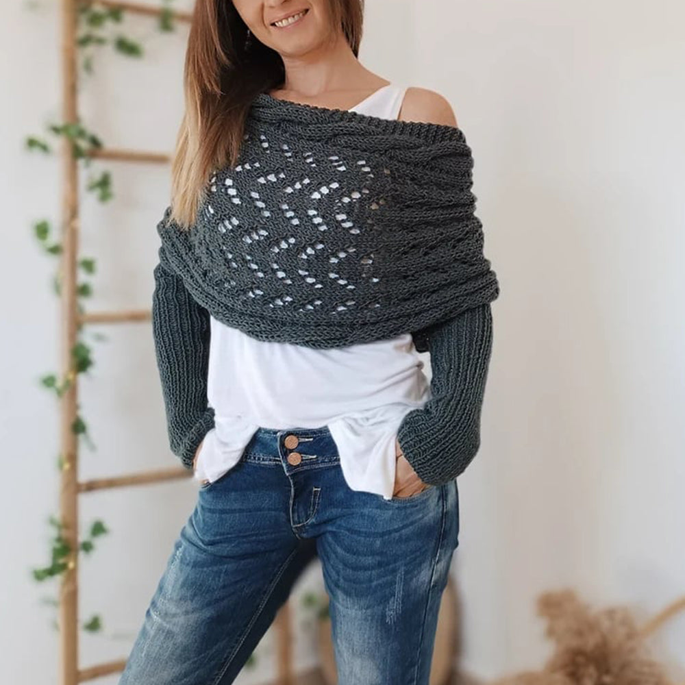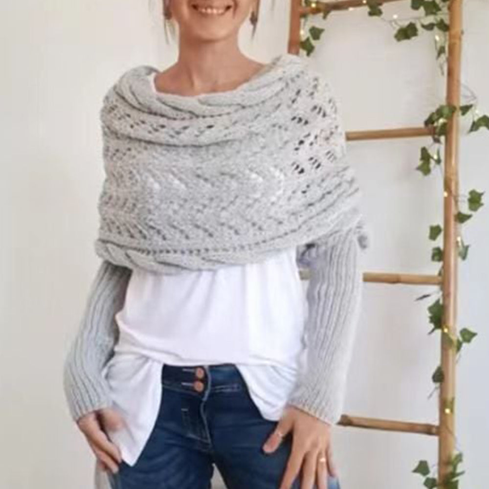 😍It's a sweater with sleeves, a knitted cable wrap, a shrug for women.