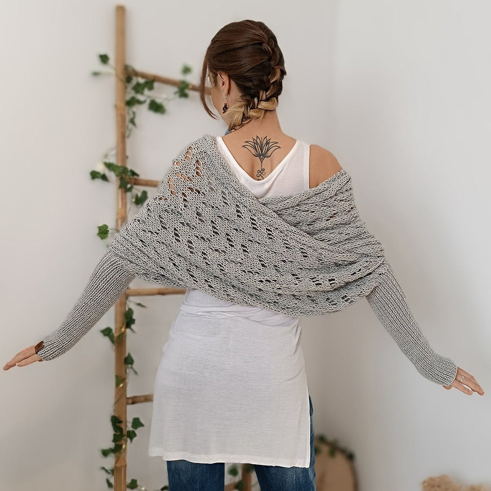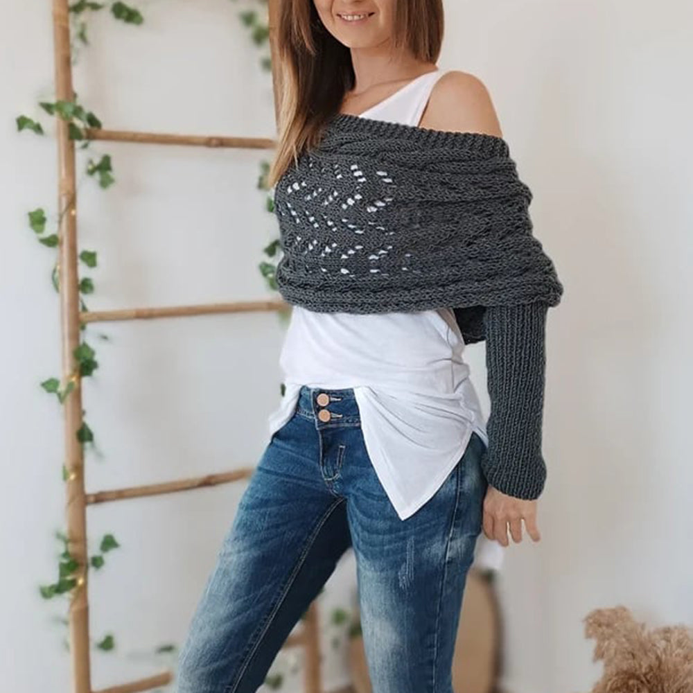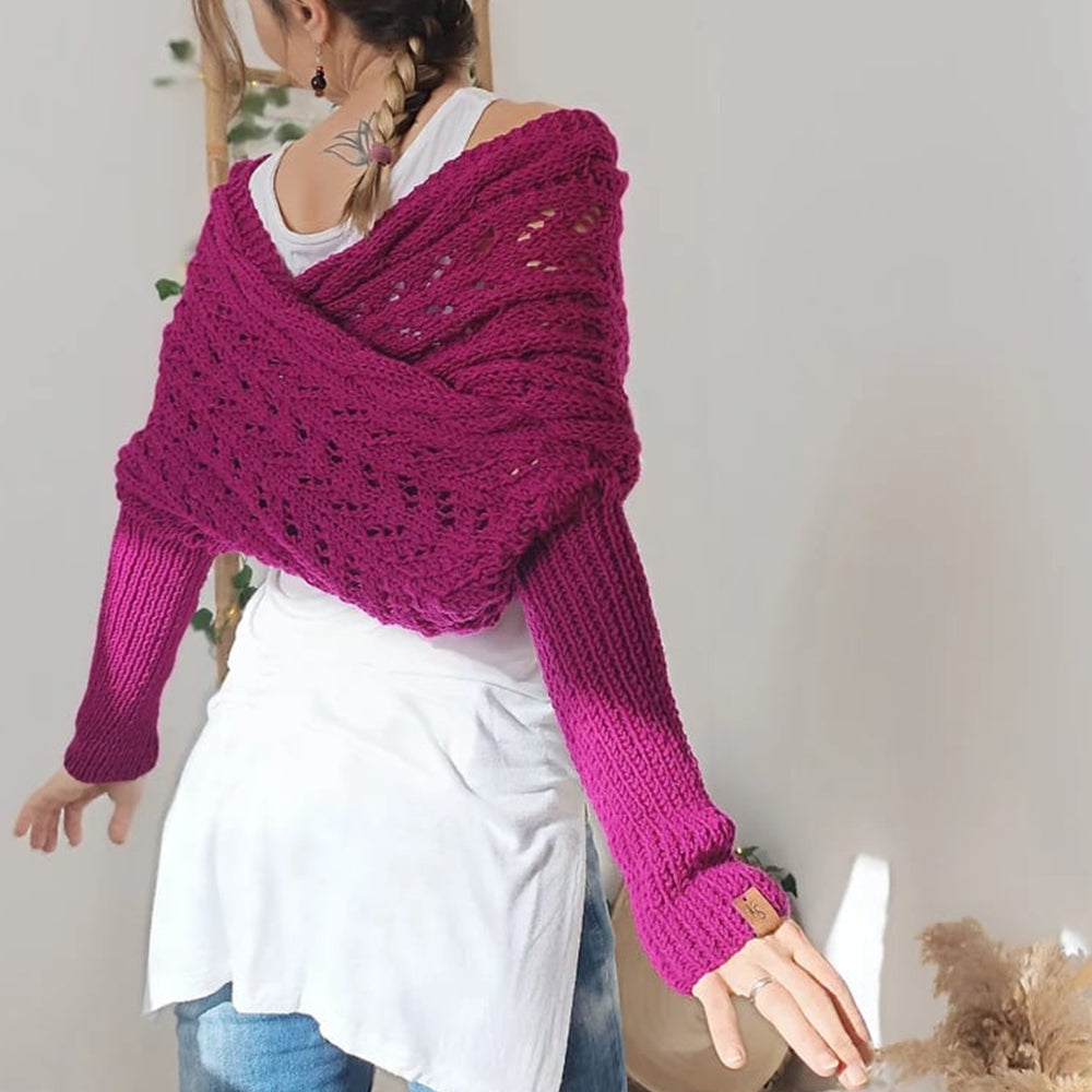- ✤【 What is it?】It's a sweater with sleeves, a knitted cable wrap, a shrug for women.