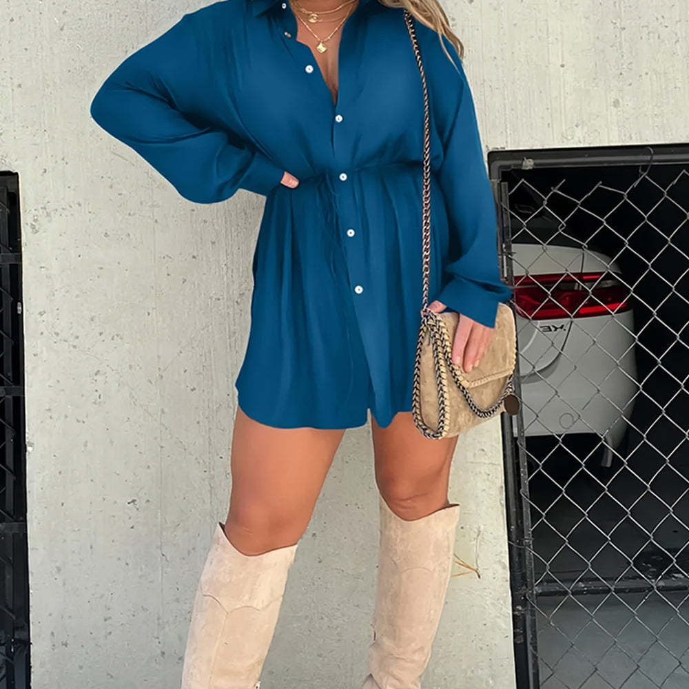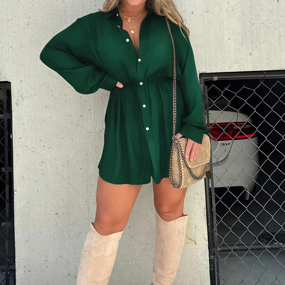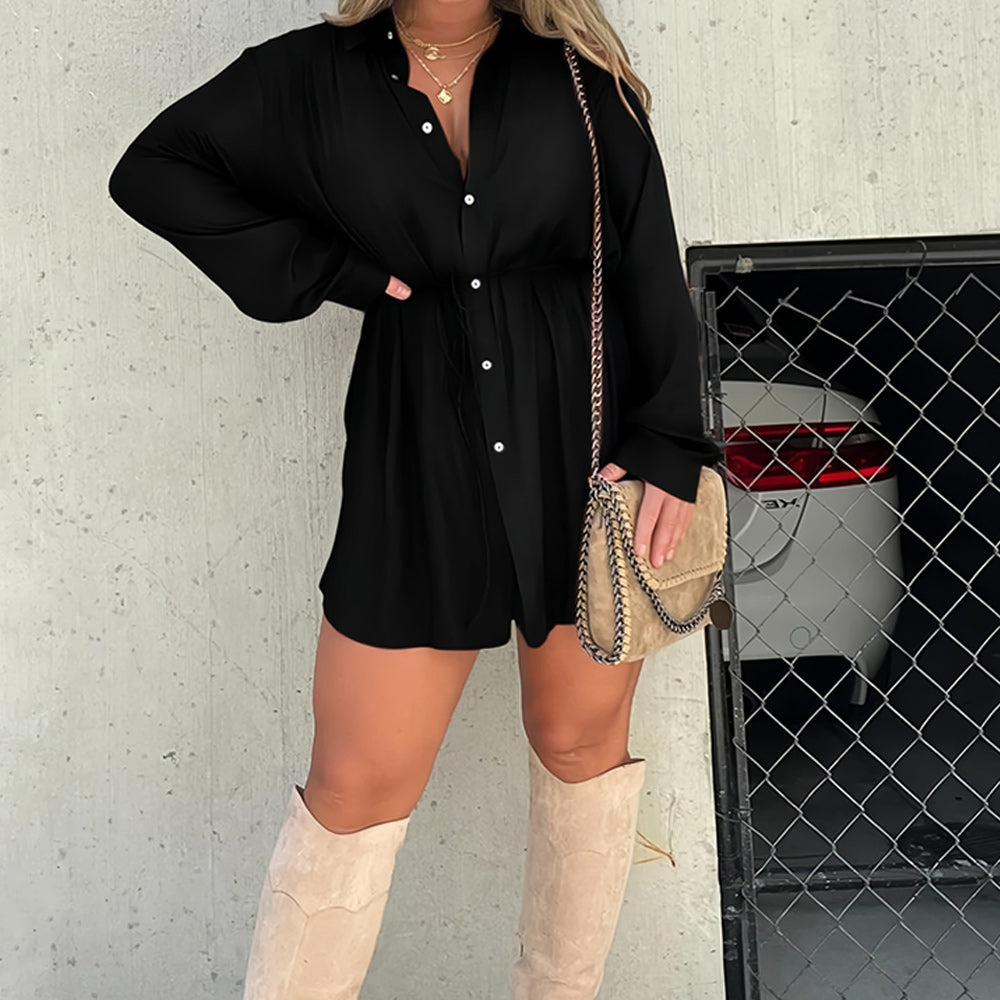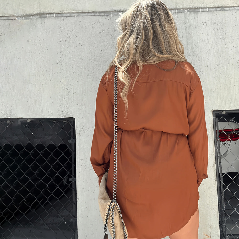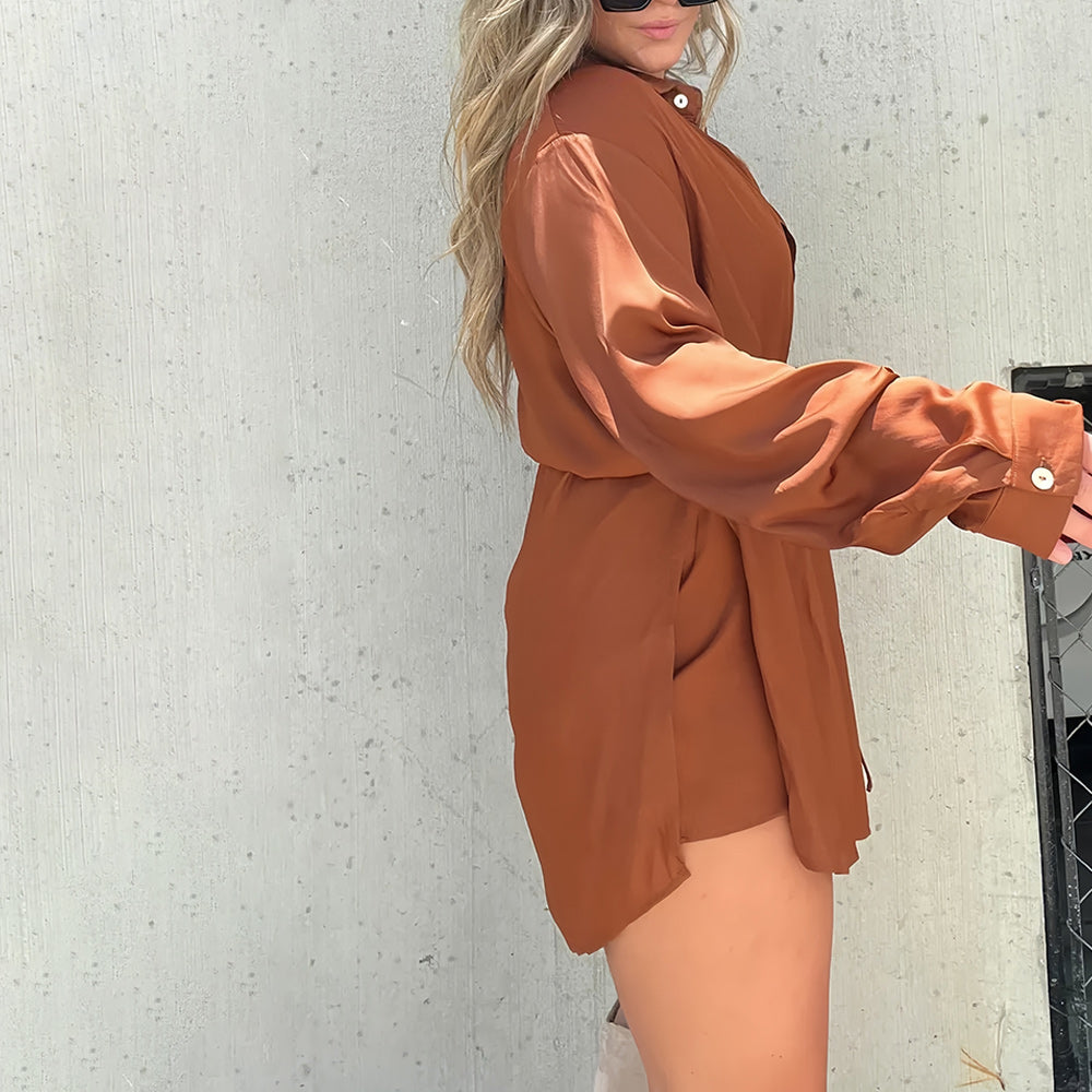 Solid color satin bodysuit with neckline and tie. Wear it open as a layering piece or closed as a dress! Super light fabric!