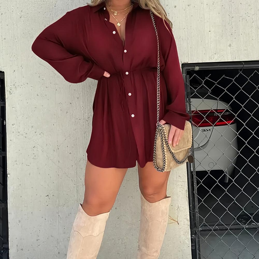 Women's Solid Color Long Sleeve Shirt Suit