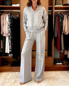 V-Neck Design: This women's fashion autumn two piece sets for women includes a long-sleeved V-neck sweatshirt and a high-waist wide-leg sweatpants. The casual pullover features a V-neck and long-sleeve design, adding charm and fashion sense