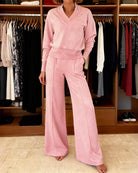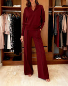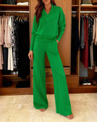 Women's Solid Color V-neck Top & Pants Two-piece Set