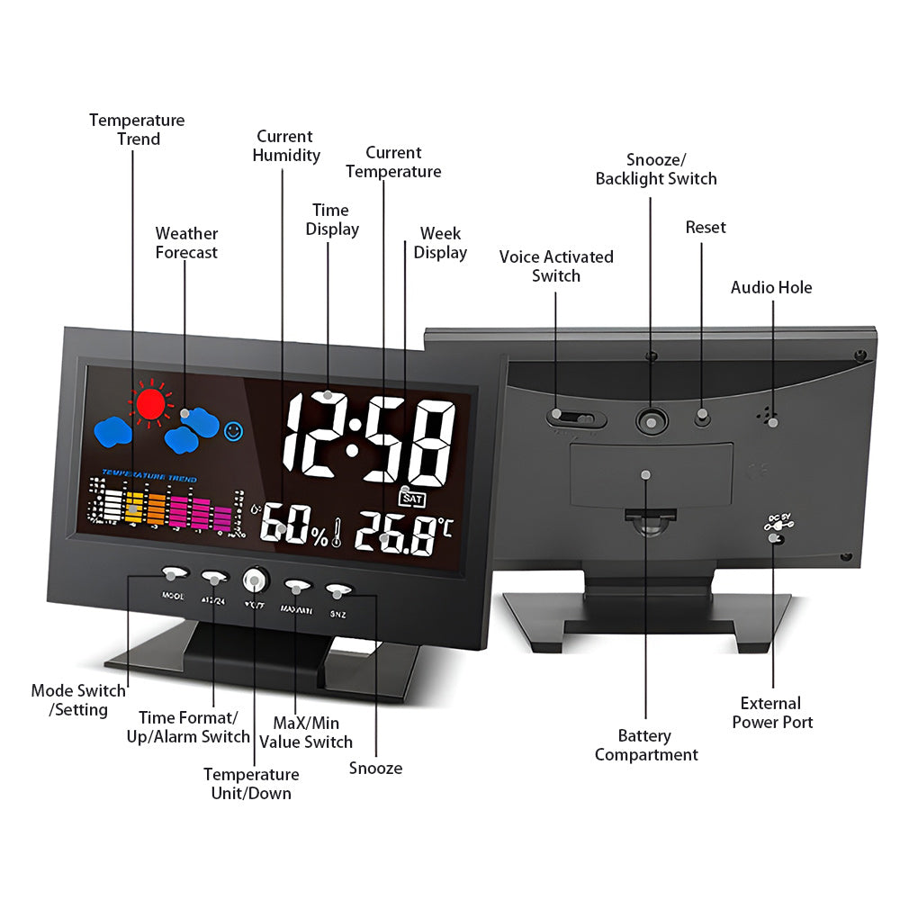- ăMulti Functionă-- With alarm, snooze function, weather, comfort level, temperature trend indication, really practical.