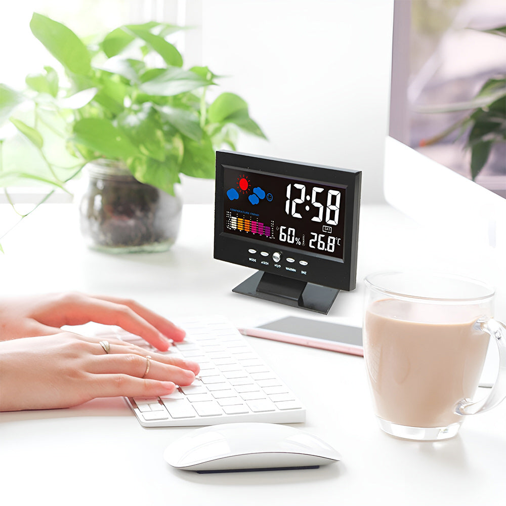 đDigital LED Temperature Humidity Monitor Weather Forecast LED Table Alarm Clock