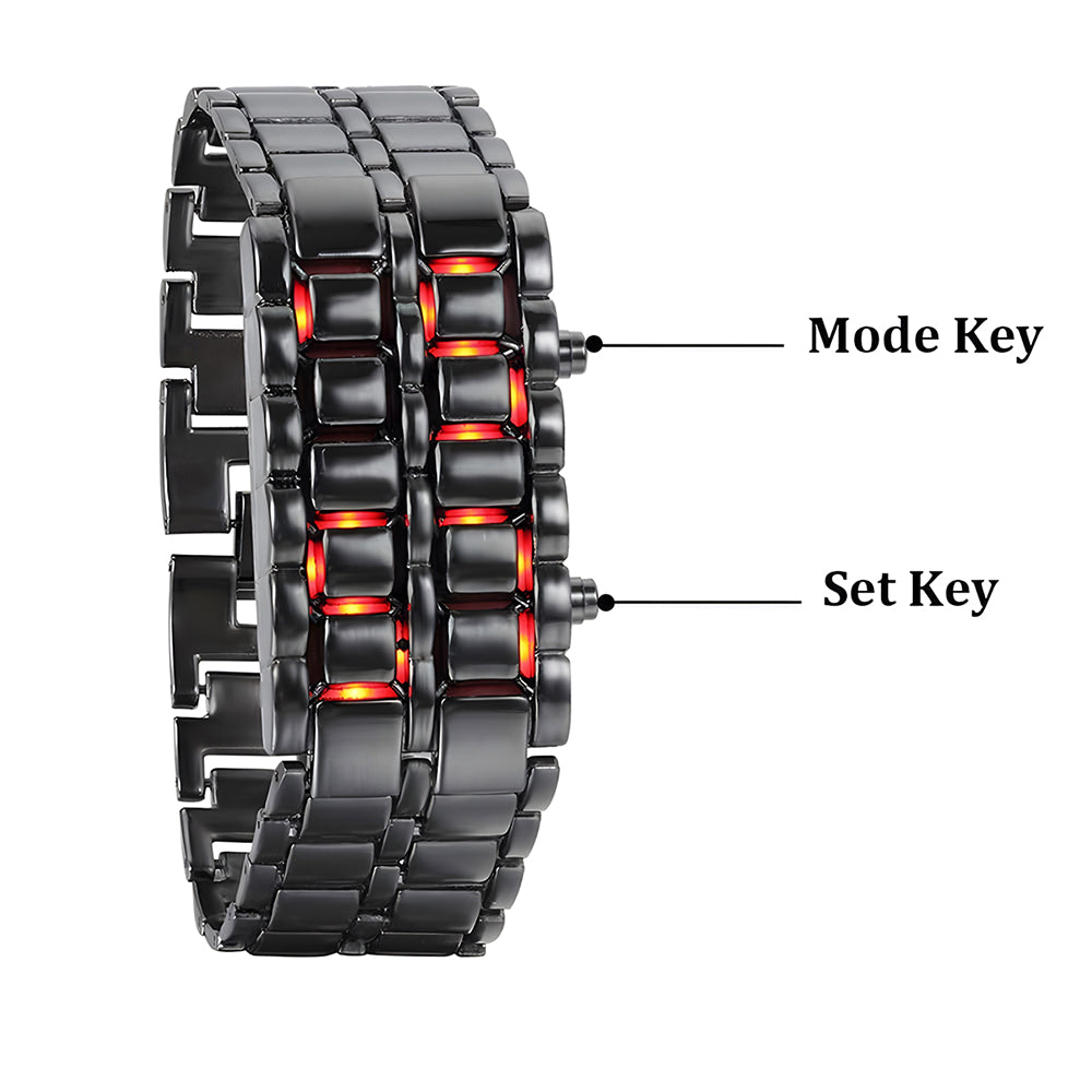 - STYLISH & COOL: Unique Faceless and Power-saving design - The screen lightens to show time when you press the upper button. Hour, Minute, different operation for buttons. Easy use buckle closure is convenient and flexible.