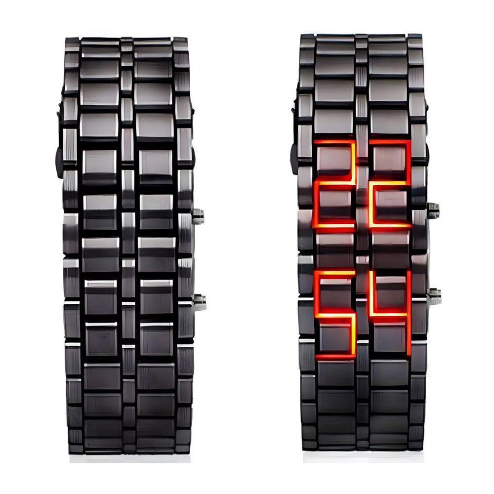 - PRECISE: Electronic movement provides accurate and constant time keeping. LED digital time display. Clear and easy read. Top row LED lights for hour or month, and bottom for minute or day illuminating display.